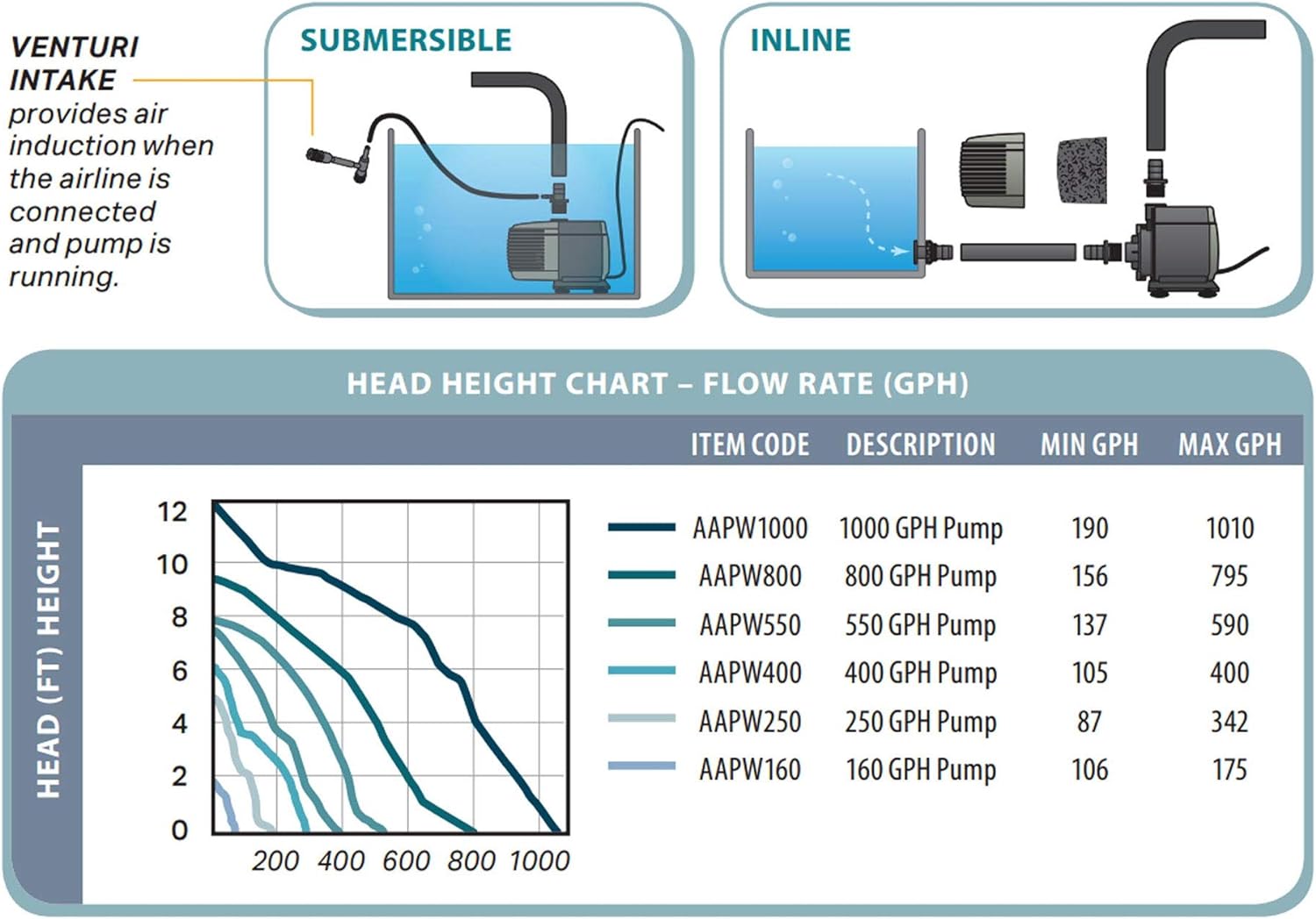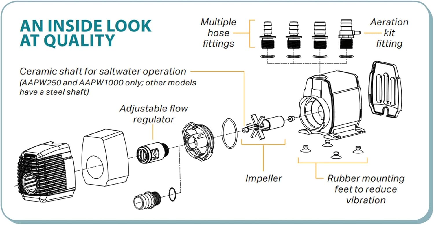 Hydrofarm AAPW1000 92-Watt 1110 GPH Indoor/Outdoor Hydroponic Aquarium Pond 6ft Power Cord for 55 Gallon Reservoirs Submersible Water Pump, Black