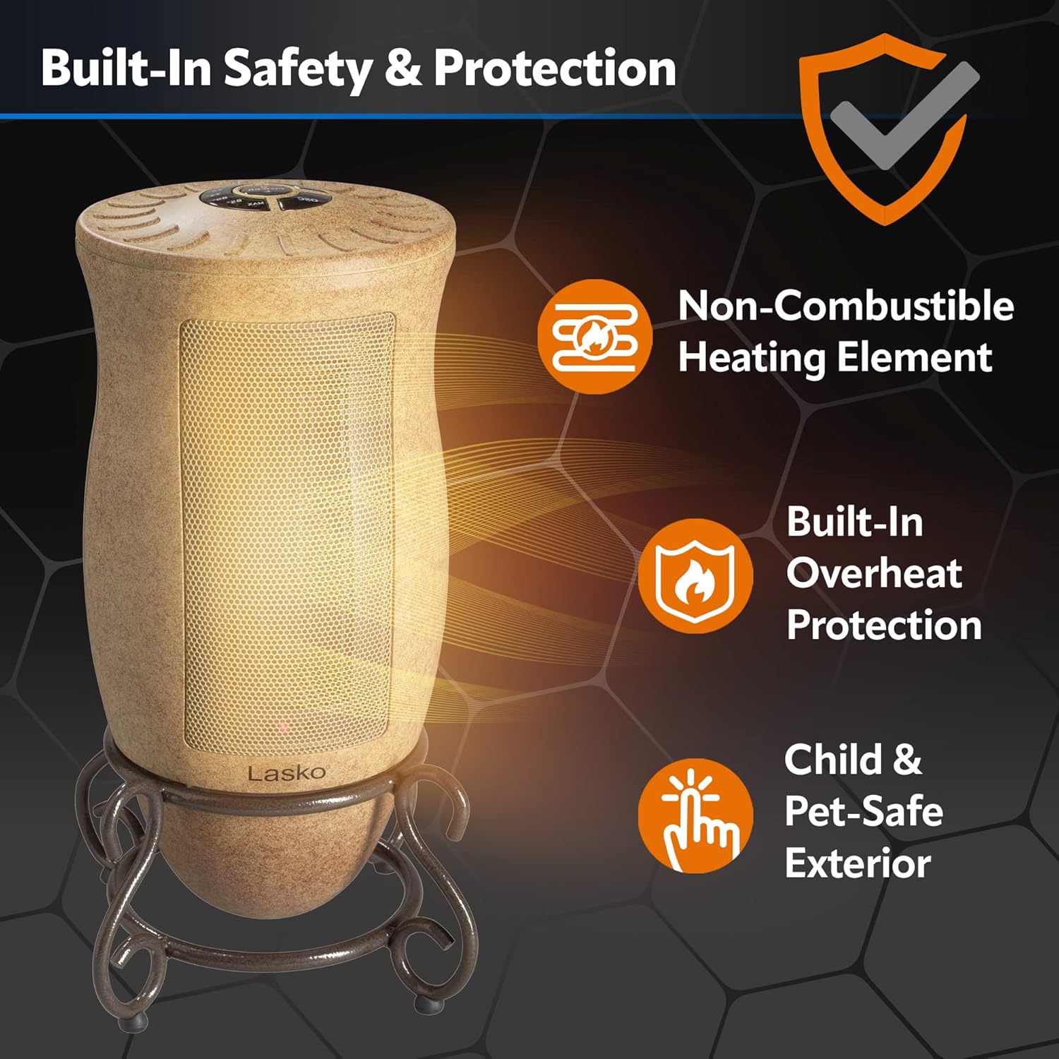 Lasko Oscillating Designer Series Ceramic Space Heater for Home with Adjustable Thermostat, Timer and 2-Speeds, 16 Inches, 1500W, Beige, 6405