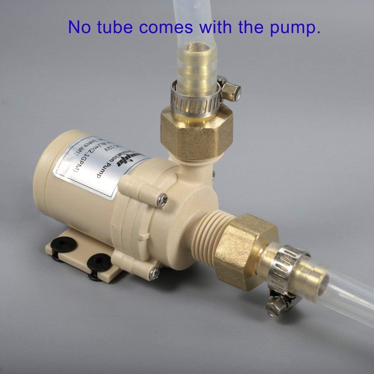 - 1/2" Male thread on the pump. The OD of the brass coupler is 10mm. Comes with a power adapter