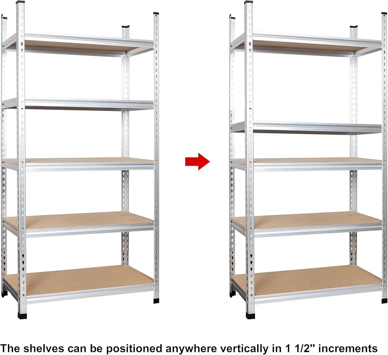 - Medium-duty 5-shelf storage unit (double post); allow for either stacked or side-by-side organization to optimize your space and convenience. Ideal for a kitchen, office, garage, or other space