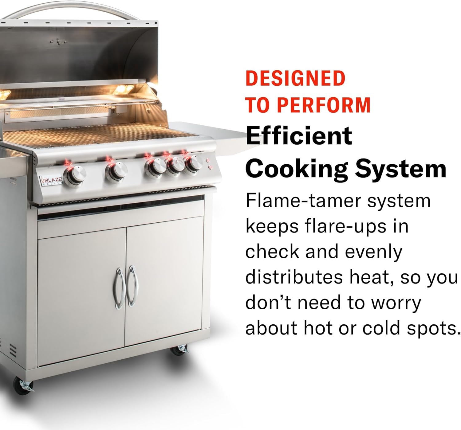 Blaze Premium LTE Built-in Natural Gas Grill | 40-Inch 5-Burner BBQ with Rear Infrared Burner & Grill Lights | 304 Stainless Steel Construction BLZ-5LTE2-NG
