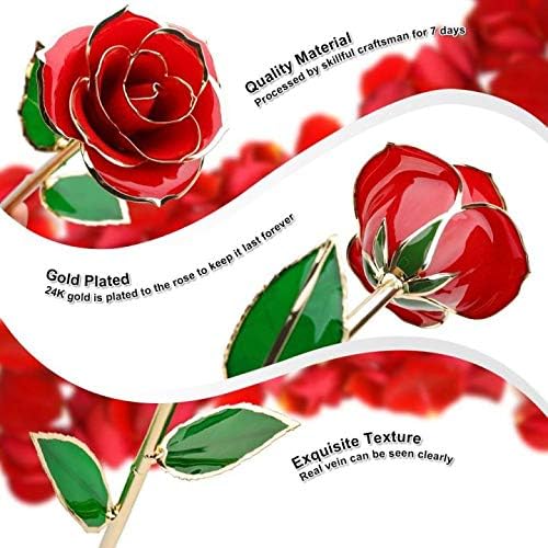 - Elegant 24k gold dipped long stem rose with real rose petals, leaves and thorns symbolizes eternal love - perfect for anniversary, birthday, Christmas, Valentine's Day, Mother's Day