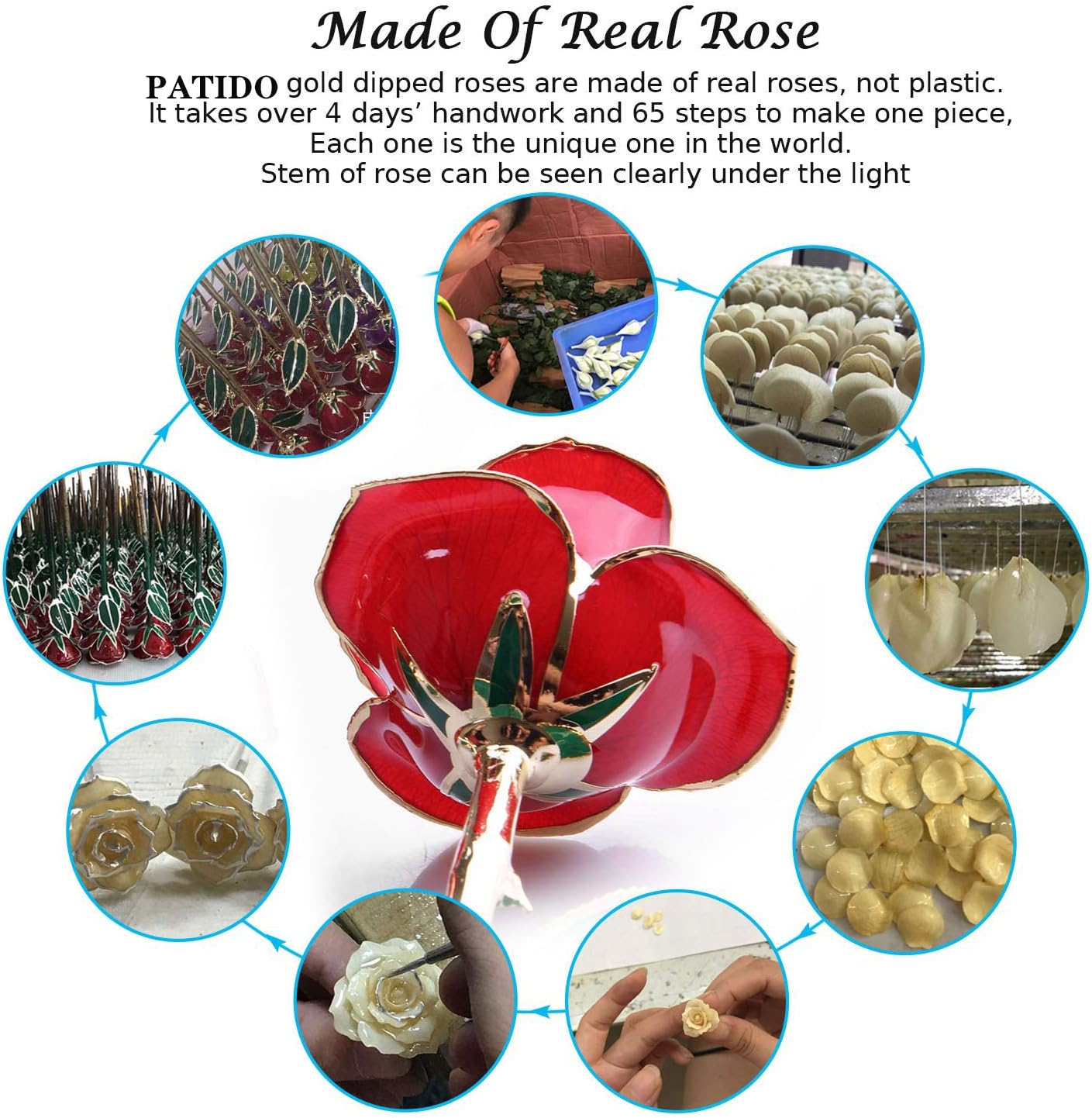 - Rose gold plating on natural rose makes it last forever without corrosion - representing your never fading love and affection for your beloved