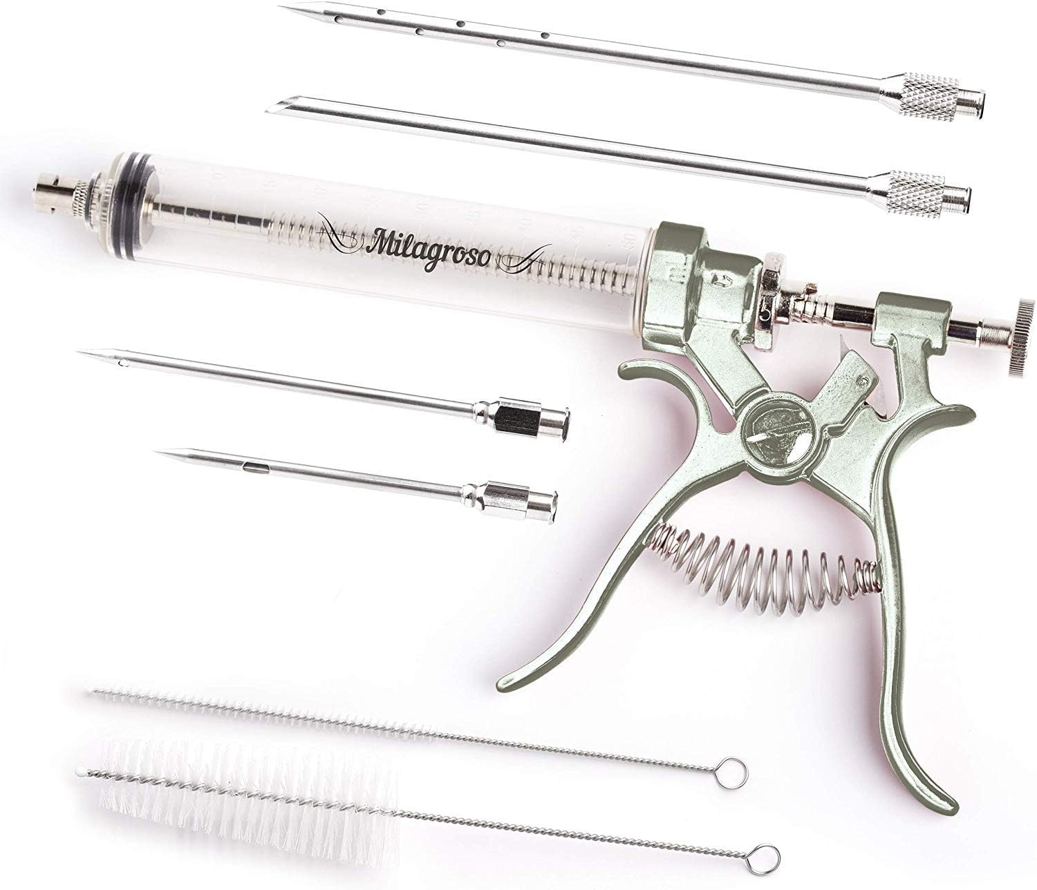 - π Metal Marinade Needles For All Needs: BBQ injector set includes four needles to cover all of your marinade meat injector needs, two designed for turkey, steaks and chicken fillets - for flavor injection into big pieces and two of infusing garlic and herbs - for injection into small pieces.