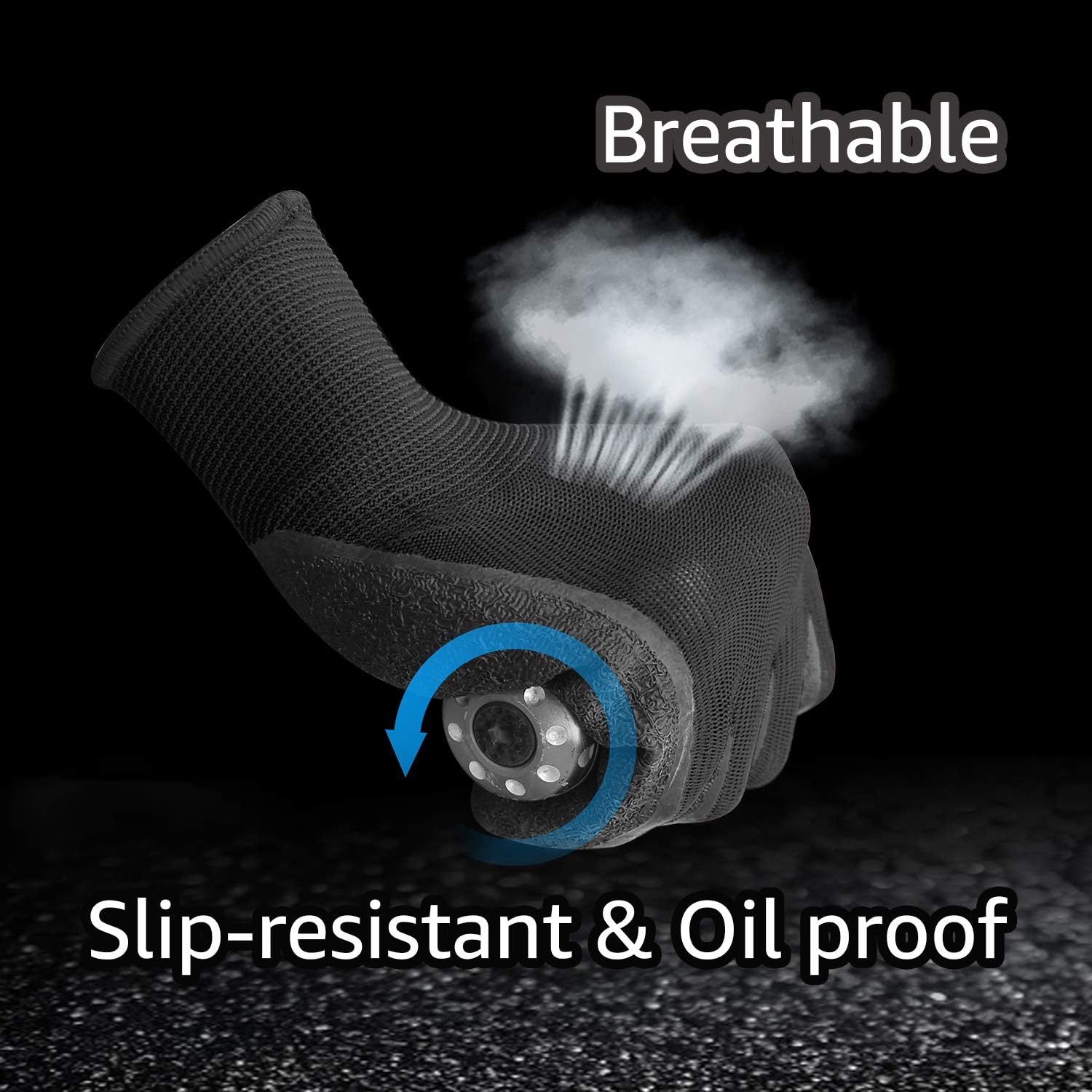 - TEXTURED COATING: Latex/rubber palm and finger crinkle coating, provides Anti-slip, Cut and Puncture resistant and repels light liquids.