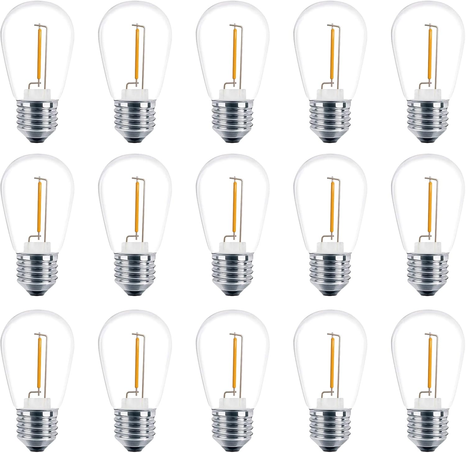Meconard Shatterproof LED S14 Replacement Light Bulbs,E26 Medium Screw Base, Vintage Edison Bulbs Equivalent to 11 Watt, Fits for Commercial Outdoor Patio String Lights, 2200K Warm White, 15 Pack