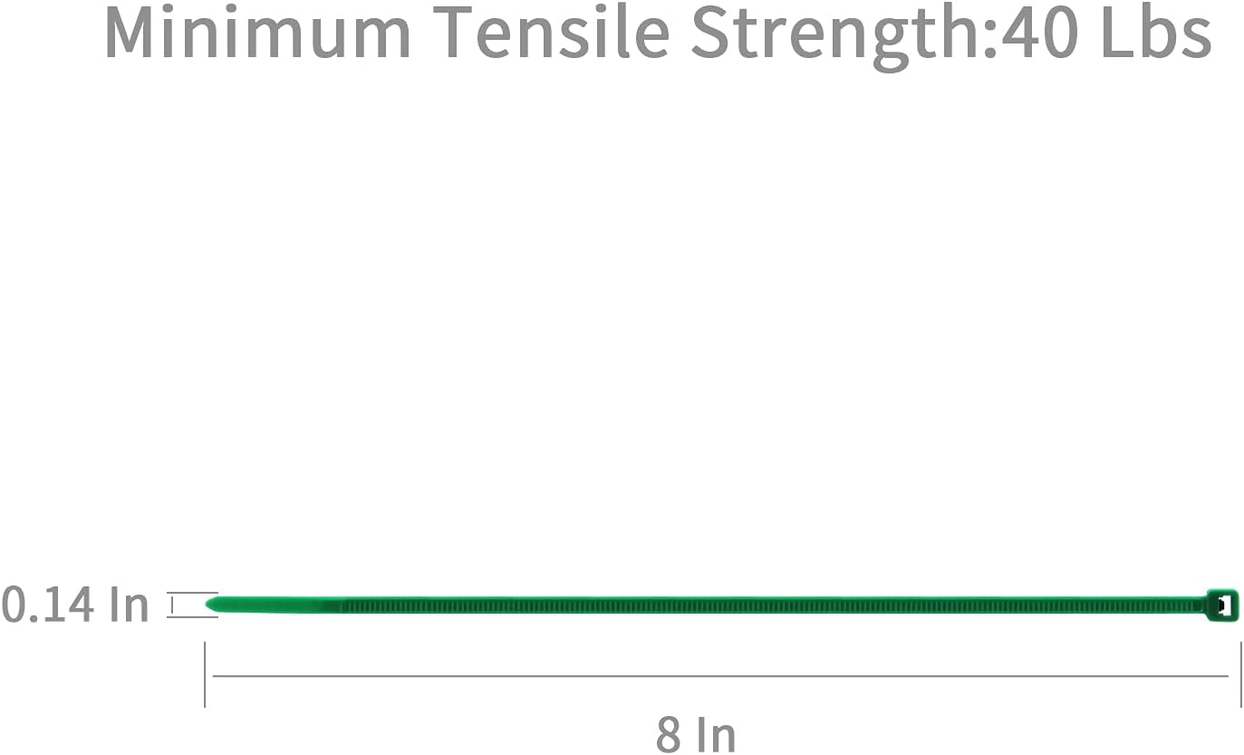 XINGO 8 Inch Green Cable Zip Ties (500 Pack), 40 Lbs Tensile Strength-Heavy Duty, Self-Locking Nylon Plastic Nylon Wire Ties for indoor and outdoor use