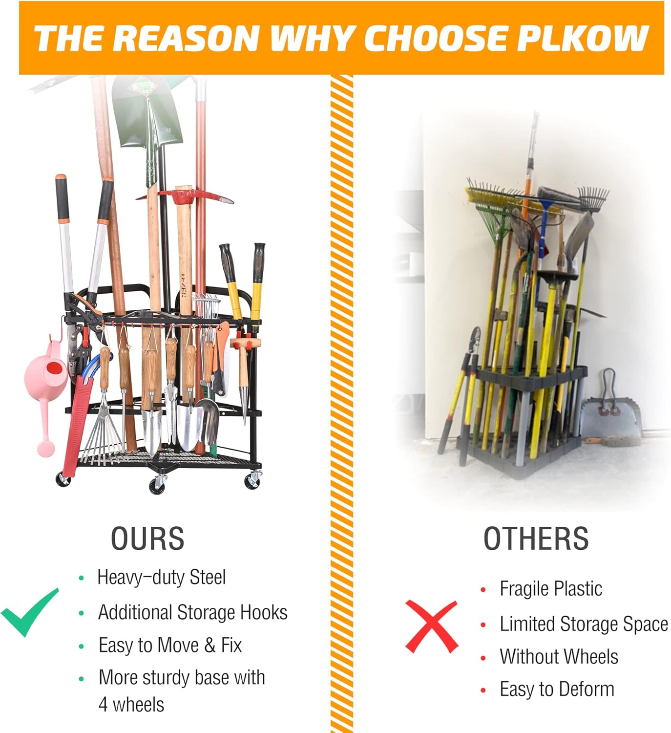 - 【Prompt Customer Service】: Measuring 24.6"L x 17.7"W x 24.6"H, our garden tool storage rack is designed to meet your needs. If you encounter any issues please don't hesitate to contact us. Our dedicated team is always available to provide professional solutions.