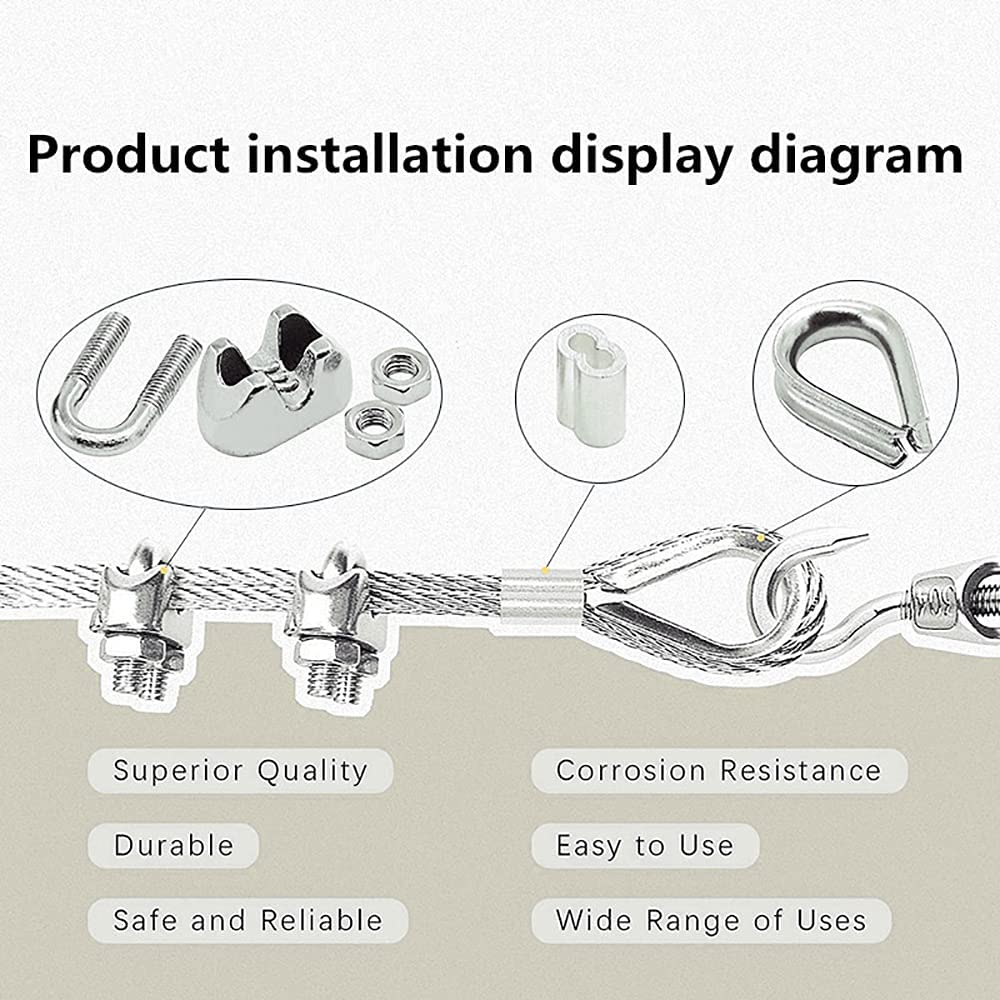 - 【1/16 Wire Rope】: The steel wire kit is made of stainless steel 304, which has strong anti-corrosion and rust resistance; the smooth surface of the Nylon-coated cable prevents the wire rope from rusting, making it longer and safer.