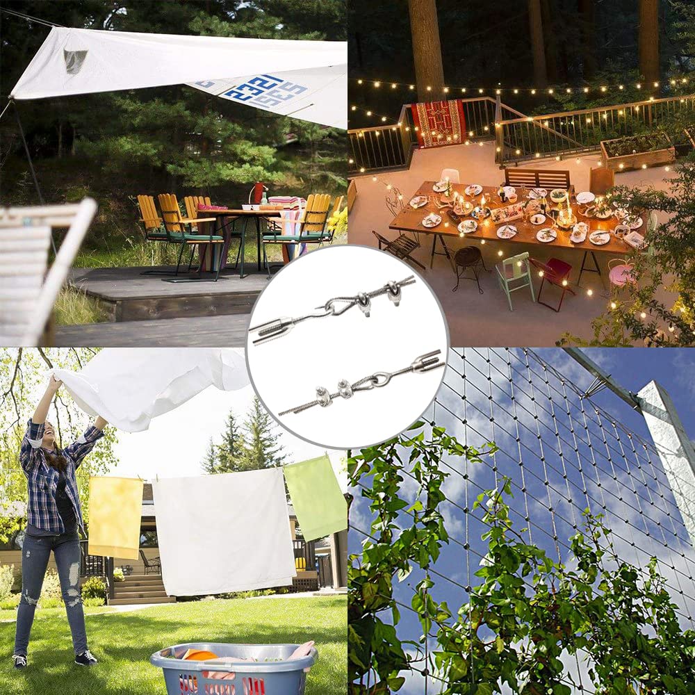 - 【Multi Application】:Suitable for outdoor applications such as tent ropes, clotheslines, outdoor hanging lights, deck cable railings, picture displays, etc. It can also support climbing plants, garden railings, canopies, pergola, etc.
