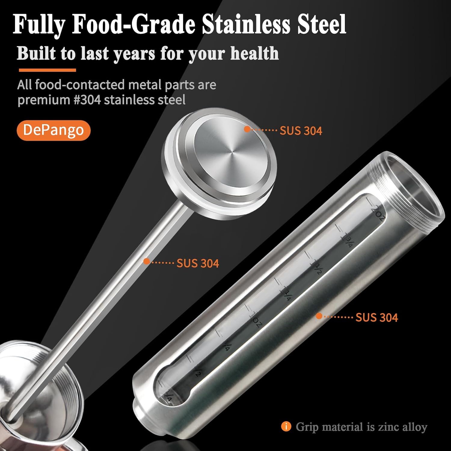 - Clear Measurement Window, Juicy Tender Meat: DePango meat injector syringe is built with solid food-grade plastic measuring window (2-oz measurement markings), anti-crack & broken-resistant; Easy to read ounce markings and control precise seasoning dose to turn the tough meat into juicer, tender & flavor, fit your desired taste bud, melt in your mouth; Practical for chef, gourmet, cook master enthusiast and rookie