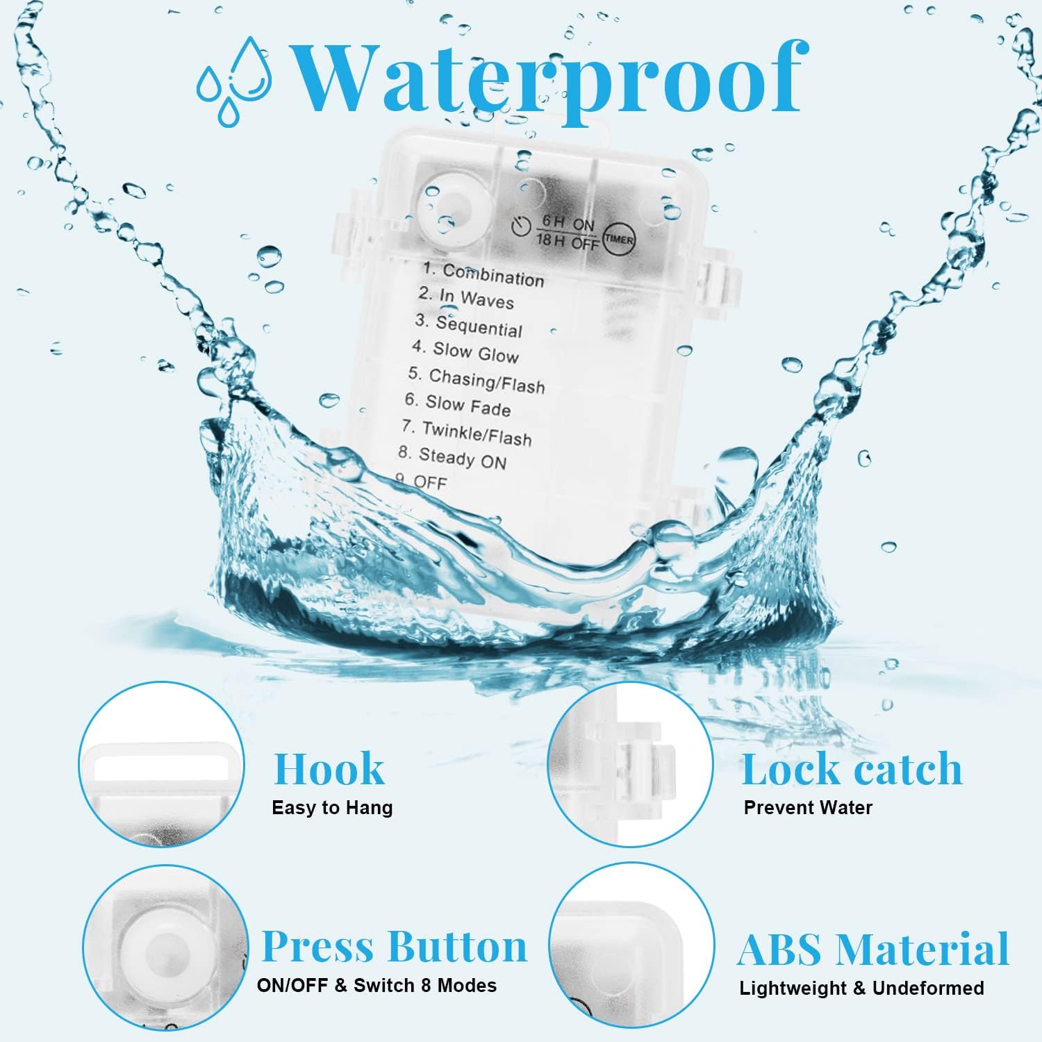 - Fairy Lights Battery Power, easy to hide: Fairy lights battery operated include the transparent battery box with a hook that is easy to hide in your design. Decoration behind your bedroom or sheer curtains, patio, restaurant. Create a fairytale atmosphere in Weddings, Parties, Christmas, Halloween