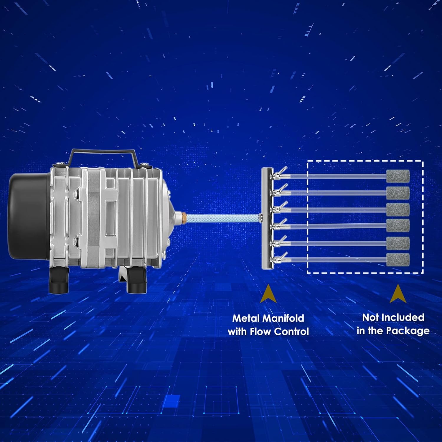 Aquarium Air Pump with Aluminum Housing, Commercial Air Pump with 6-Outlet Air Manifold, Pond Aerator Fish Tank Bubbler for Aquarium, Pond, Hydroponics (1000GPH-30W)