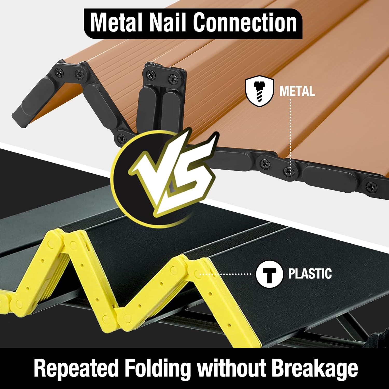 - Hinged Connection Upgrade: VILLEY outdoor table has a unique metal screw design that works with hinges to connect each panel of the table, unlike other similar foldable tables that are connected with bungee cords or plastic nails, heavy-duty metal nail-attached hinges make the snack table more stable, allow it to last for many years
