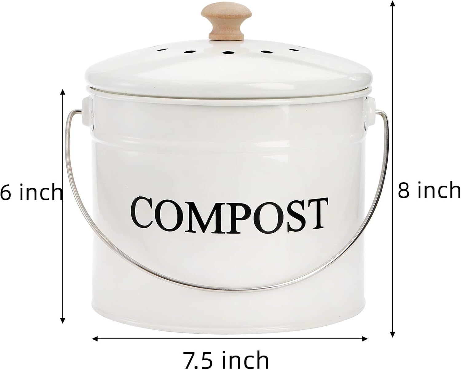 - Durable Material: Made of strong, durable high quality metal that won't scratch, chip easily, with a special coating inside and outside, this composter container will not rust easily. The smooth surface makes it clean and wash easily with warm soapy water.