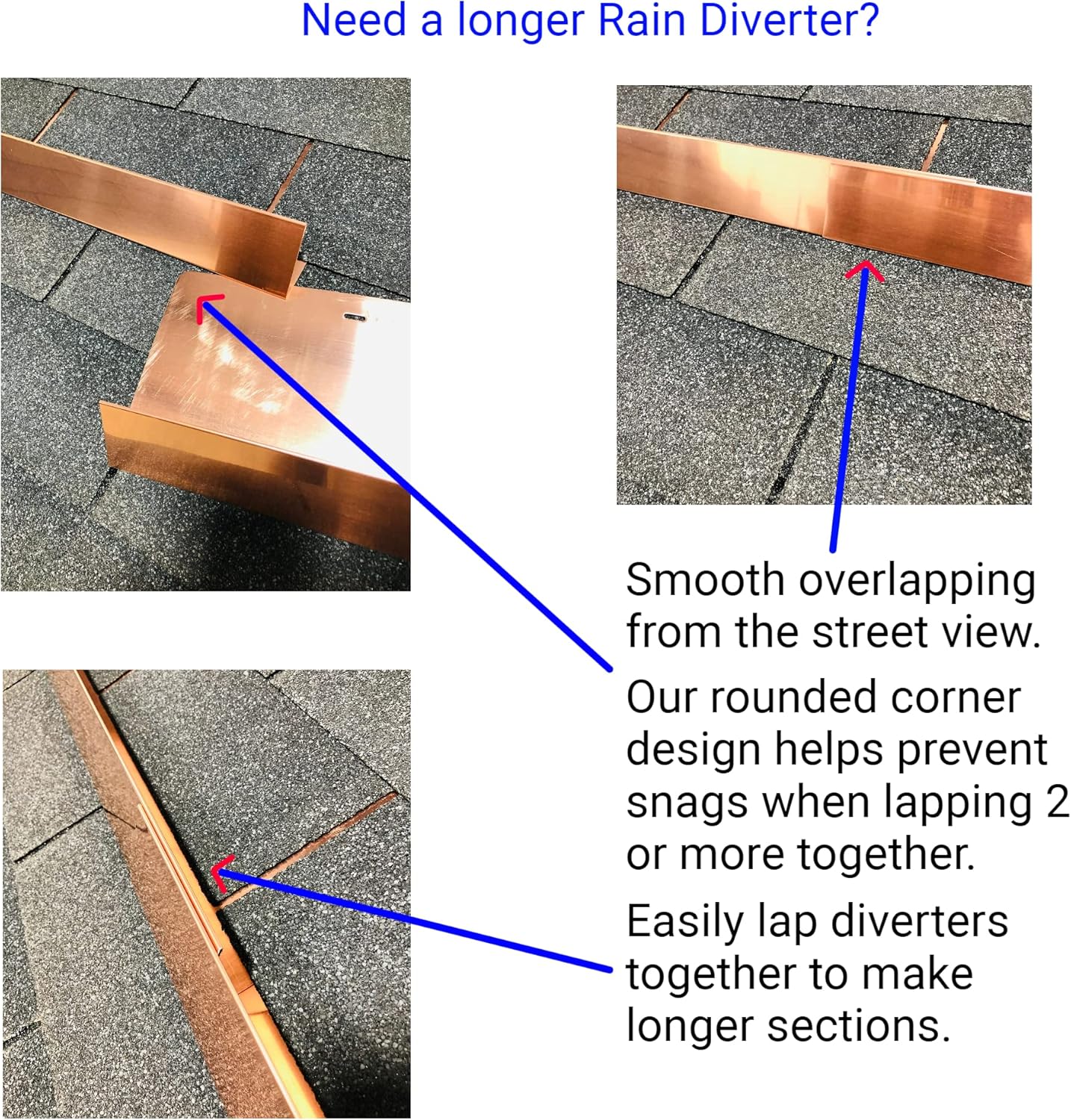 - {Easy to Install} - Simply slide under shingle tabs and fasten with included nails. - Each order includes instalaltion instructions and hardware. - Rounded corners and slotted nail holes make for simple installation. - Can be easily overlapped with other diverters to make longer sections.