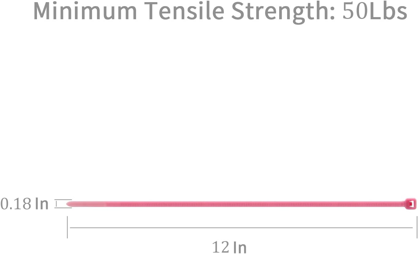 XINGO 1000 PCS Pink Zip Ties 12 Inch, 60 LBS Tensile Strength, Self-Locking Nylon Plastic Nylon PA66 Wire Ties for Indoor and Outdoor Use