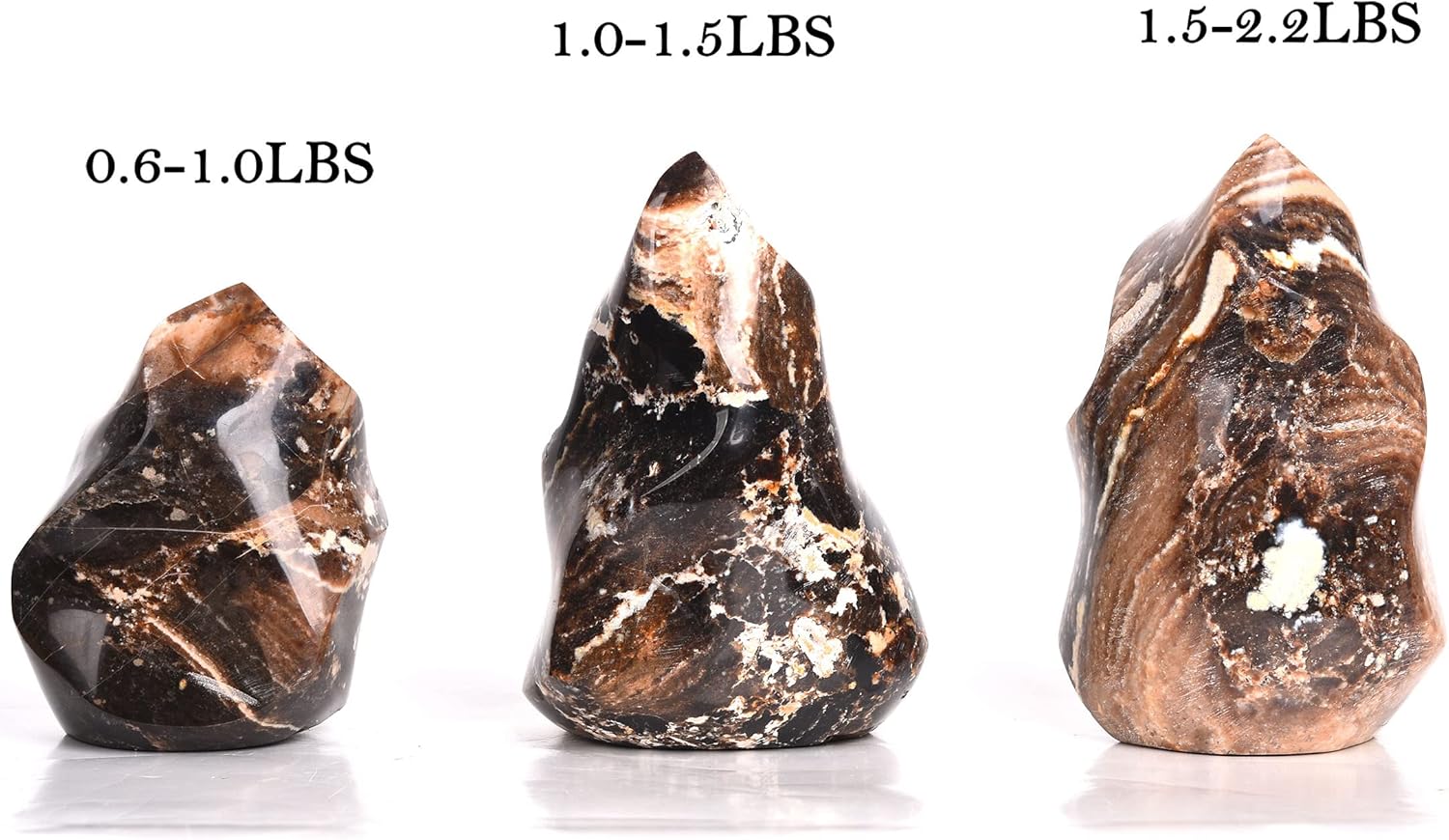 - Size: 1pc flame shaped Black Opal tower, 0.6-1.0 LBS weight per pc. the actual size and color are a bit different from each other, we will send by random from available lot.