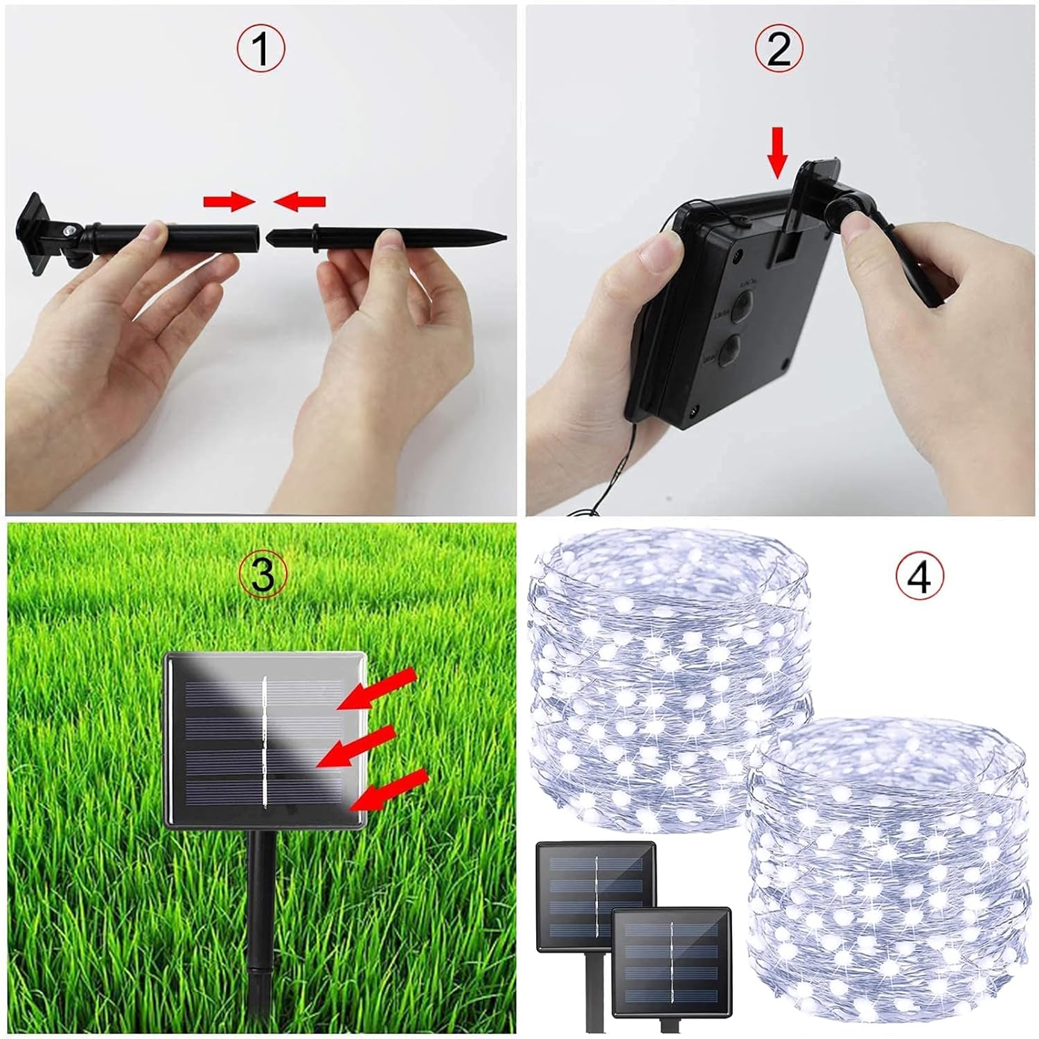 - [Widely Used Solar Fairy Lights Outdoor]: Wonderful Christmas decor, garden decor, party decorations, wedding decorations, holiday decorations, Christmas tree, patio, backyard, fence, porch, tree, roof, outside and inside. Outstanding solar lights outdoor can meet all your needs in various scenes.