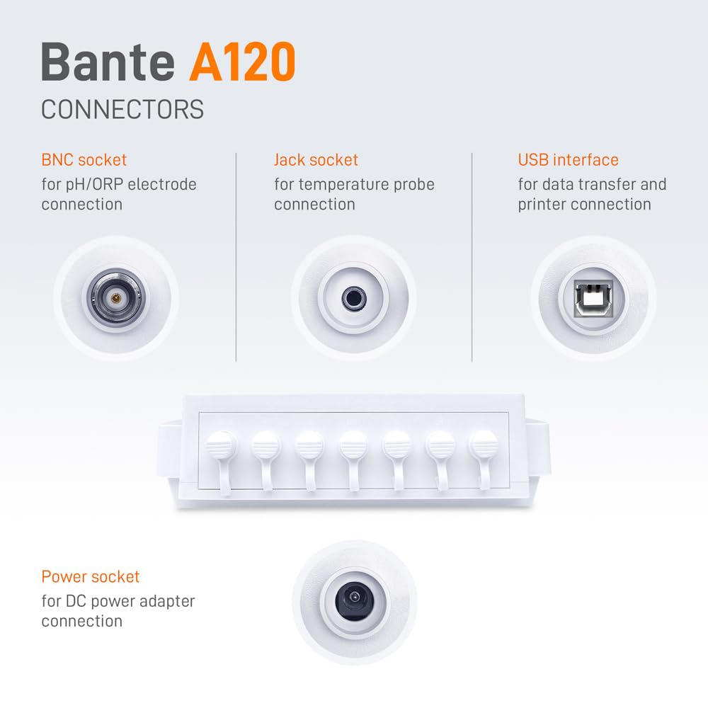 Bante A120 Laboratory pH Meter | Benchtop pH Meter | ±0.002 pH Accuracy, 5 Points Calibration, Selectable ORP Measurement Mode, Auto-Read Endpoint, 1000 Sets of Data Storage