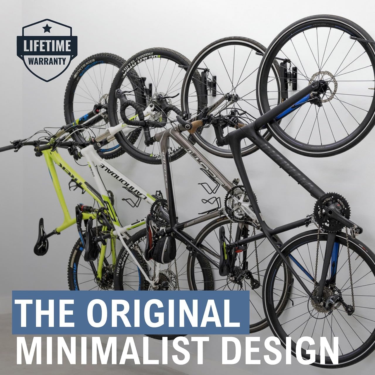 - WALL-MOUNTED BIKE STORAGE – Reclaim your garage, shed, or apartment space with this space-saving vertical bike rack. Designed to mount securely to wall studs, each rack stores one bicycle flat against the wall, making it ideal for indoor bike storage in tight spaces. Compatible with a variety of bikes including road bikes, e-bikes, folding bikes, and more. Fits tires up to 2.6" wide and up to 29" in diameter.