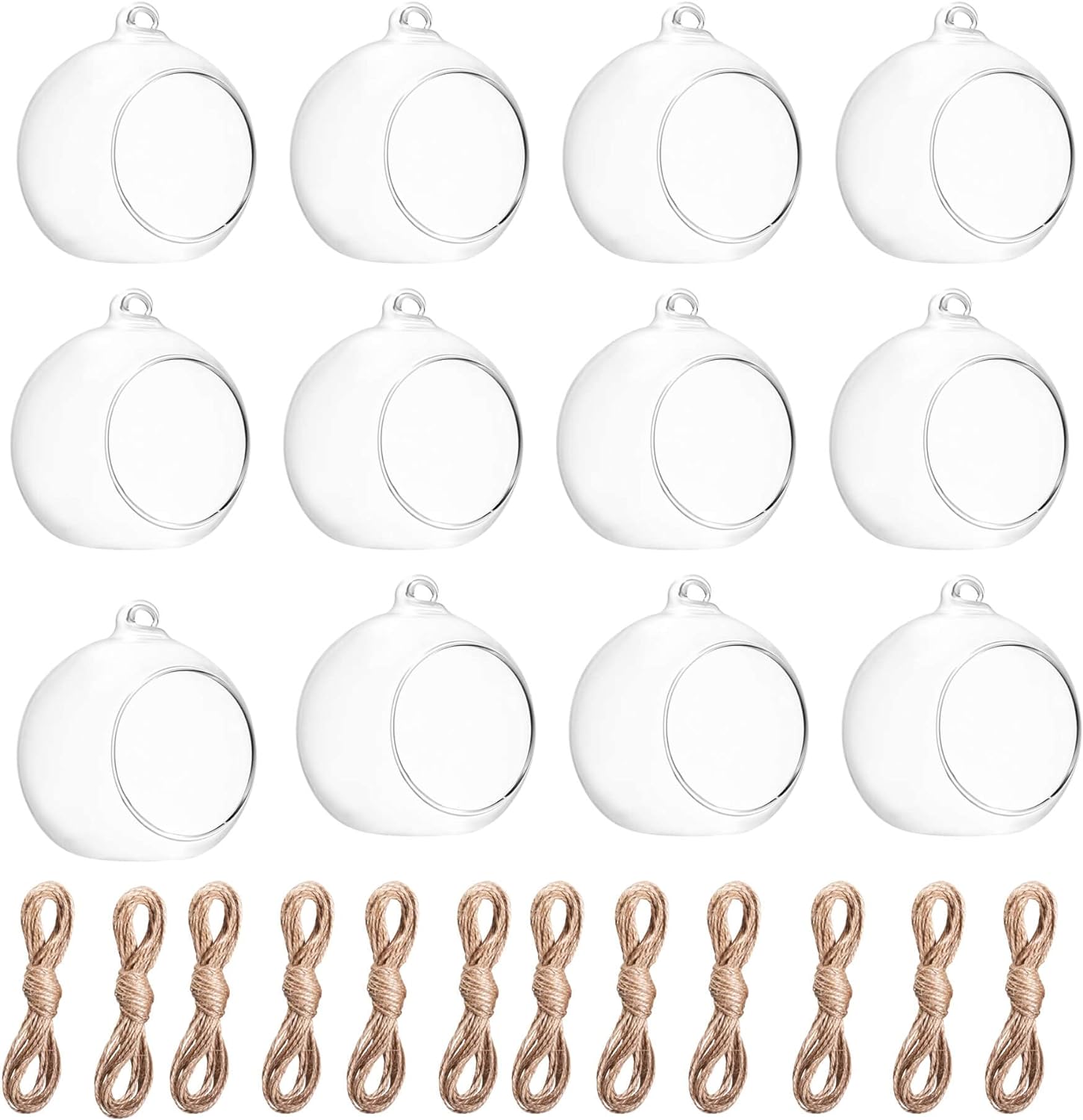 Hanging Glass Candle Holder, Globe Glass Tea Light Holder, Hanging Glass Vase, Flower Plants Terrarium, Glass Orbs Container, Micro Landscape DIY for Home, Office, Wedding (2.36" 12Pcs)