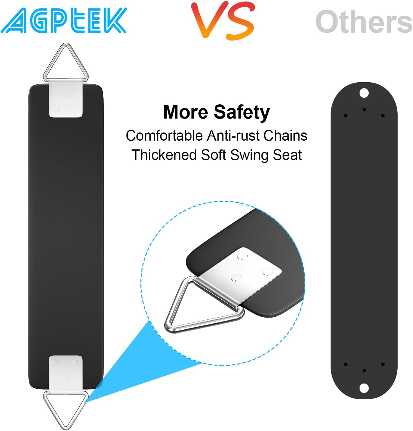 - β¦ HIGH QUALITY - This AGPtEK swing seat was crafted with heavy duty parts and material to ensure hours of fun and years of play. It is made of polymer and metal.