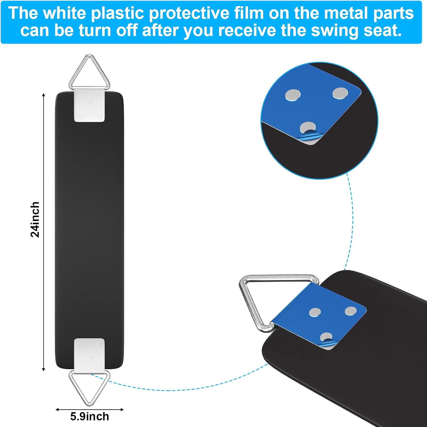 AGPTEK Swing Seat, 30.4 x 6 x 0.27 Inch Yard Swing for Boys and Girls & Adults with Metal Triangle Ring - Black (113KG /250LB Weight Limit)