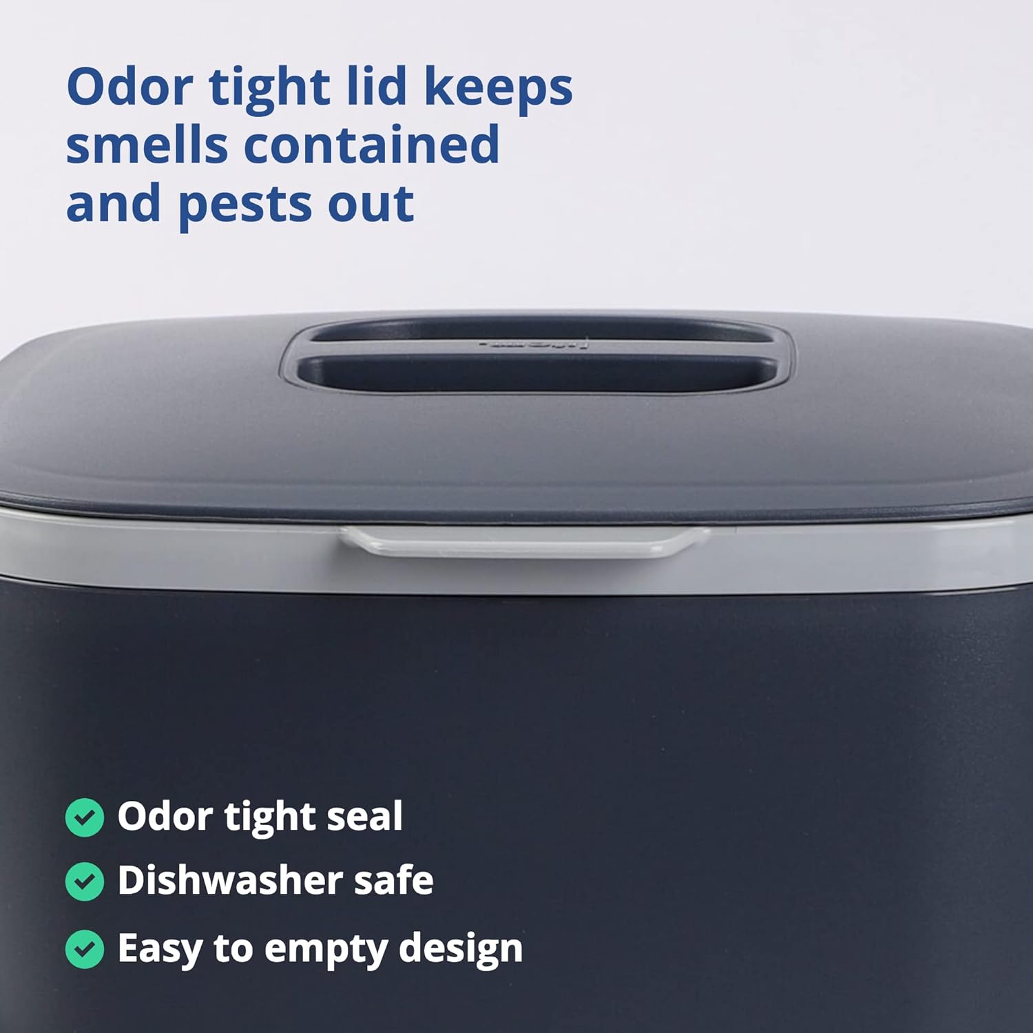 - KEEPS SMELLS CONTAINED - This food waste bin has a modern design that looks great and contains odors without the need of costly charcoal filters.