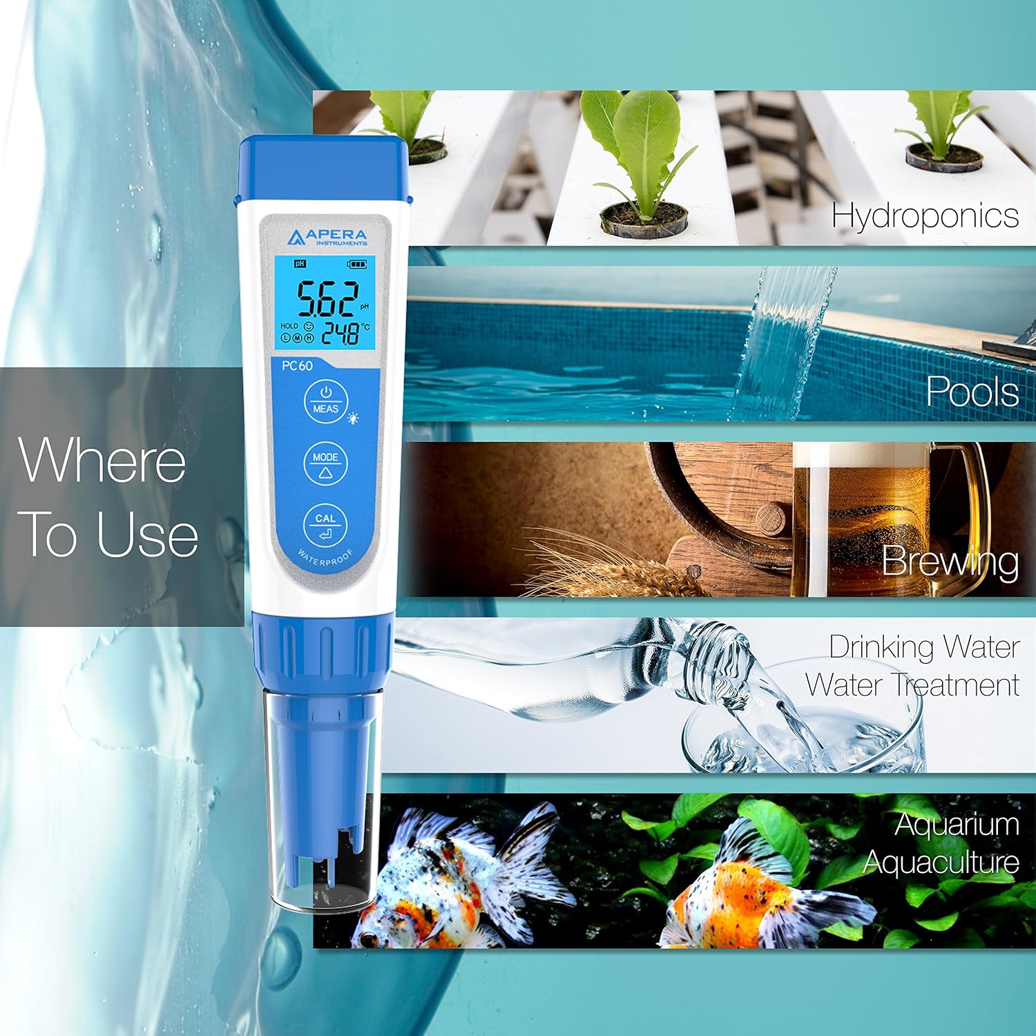 - Product 1: Measures pH/EC/TDS (ppm)/Salinity/Temp. in a quick and professional manner