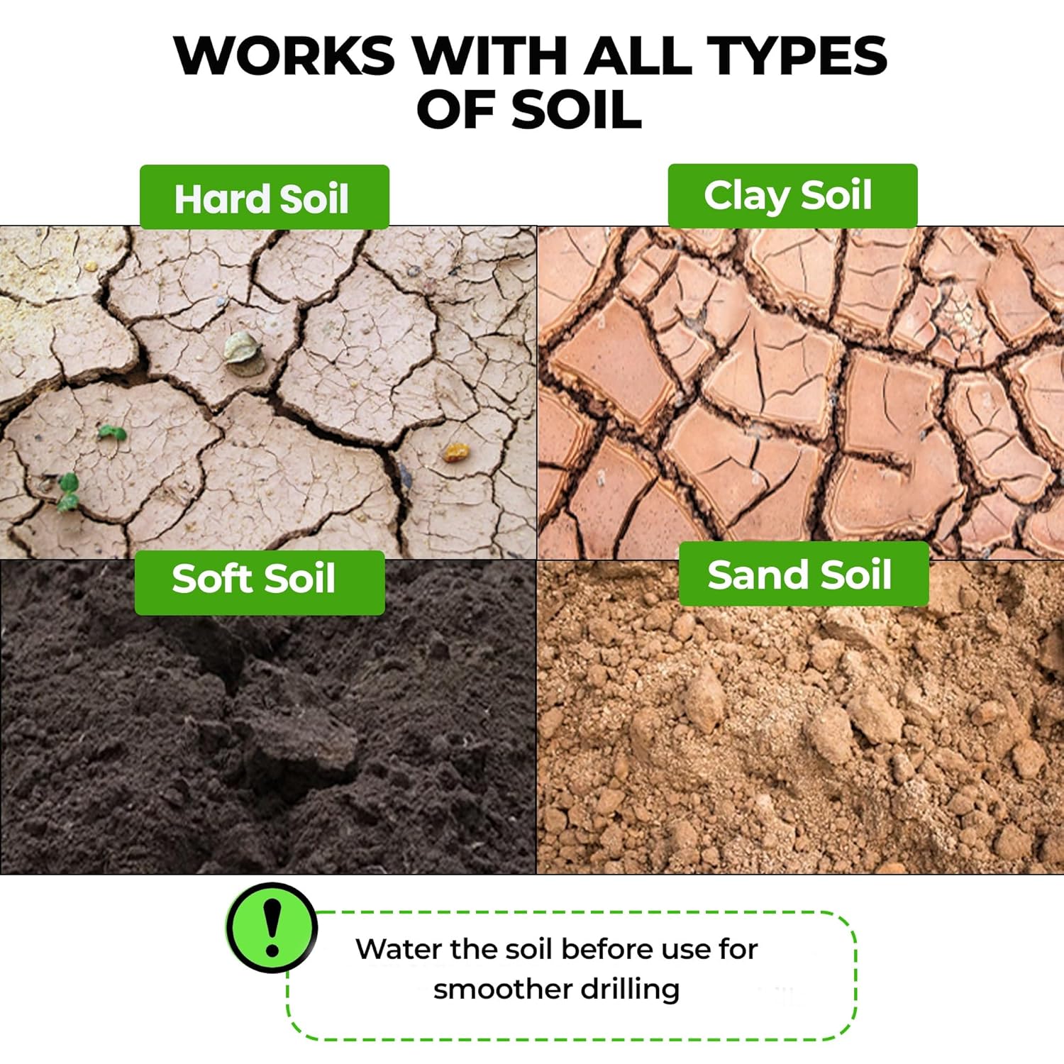 - Cut Your Work Time in Half: Say goodbye to sore hands and blisters! Our auger drill bit significantly reduces the time it takes to plant flowerbeds or install fences, allowing you to dig as many holes as you need in a fraction of the time compared to traditional methods