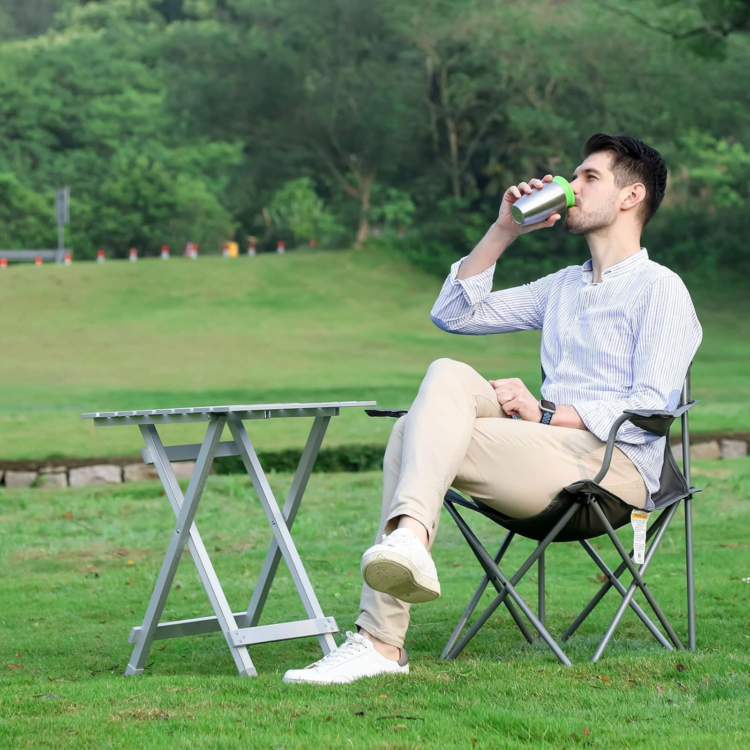 - Easy-Peasy: Setting this small folding camping table up is super easy and fast. You only have to open the table tops like the video shows, and β¦ Ta-Da! Here you go - now you can enjoy this supreme compact & sturdy & lightweight folding table and easily transport to camp, lawn, concerts and festivals.