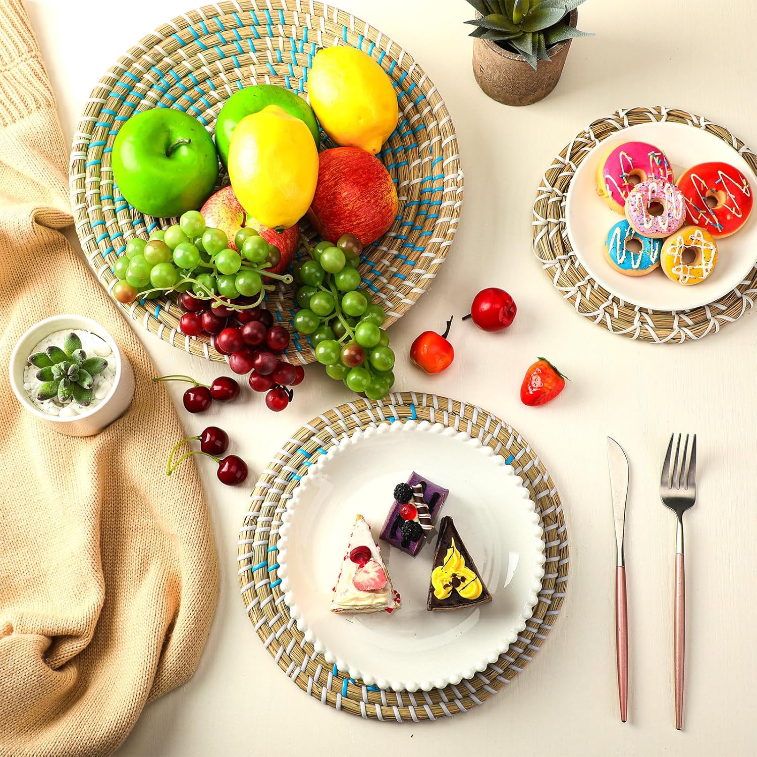 - Delicate Workmanship: woven wall decor is natural and hand woven, made of blue and white plastic cord, neutral colors are easy to match, each seagrass basket is finely handcrafted; When first opened, there will be a natural aroma, which will dissipate in a short time