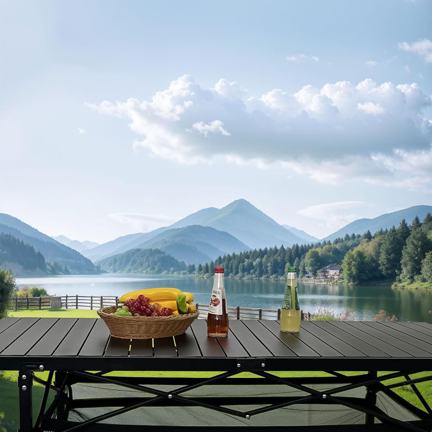 - Extra storage space:This outdoor camping table comes with an extra mesh storage bag, providing more space to hold snacks, kitchen gadgets, books, and other items you might need. And when you don't need it, it can be quickly disassembled and stored away.