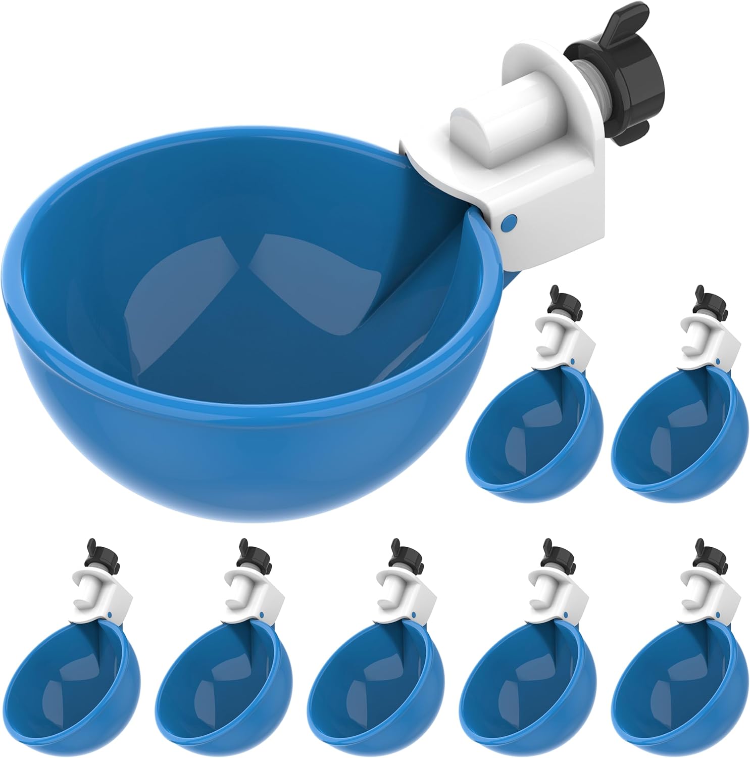 Lil Clucker - Blue Large Automatic Chicken Waterer Cups Suitable for Ducks, Geese, Turkeys, and Bunny Rabbit - Water Feeder Kit - Poultry Waterer - Pack of 8…