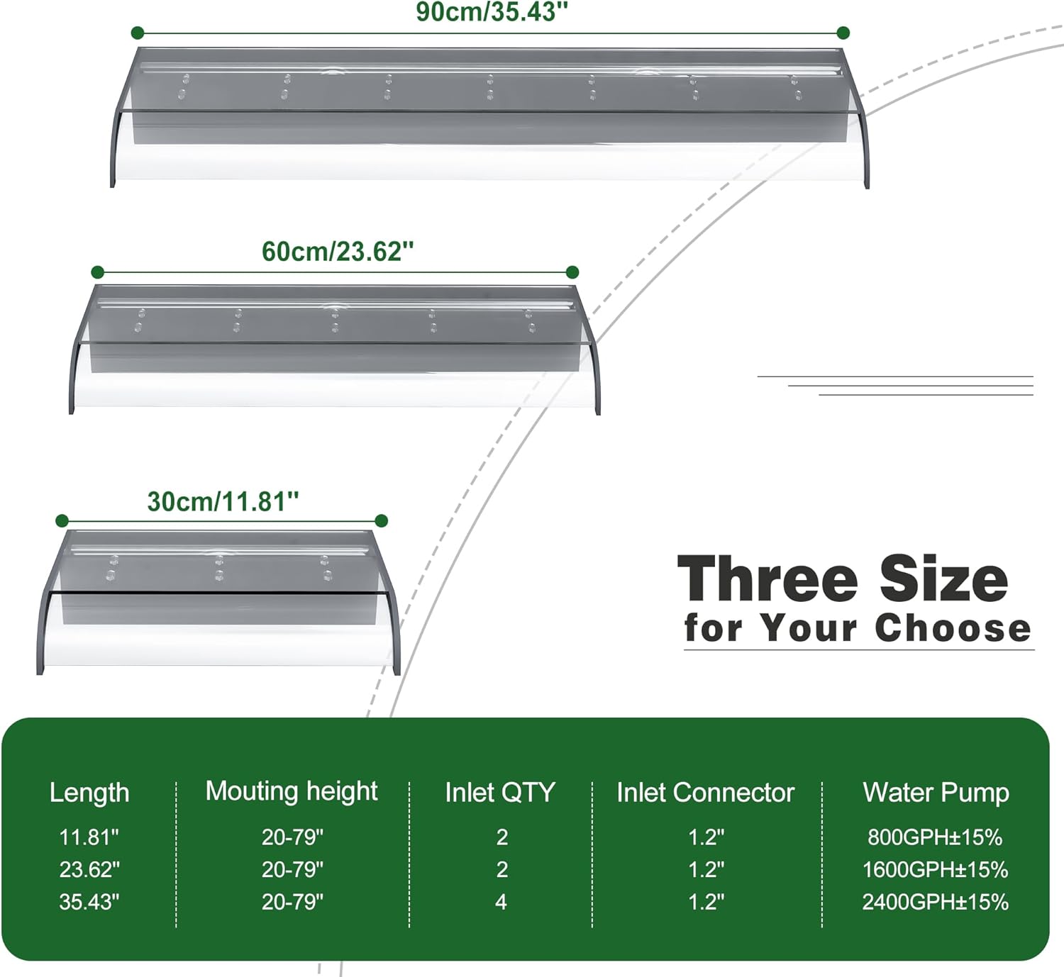 - ăUpdated Curved Open Lipă- Unlike other narrow, short waterfalls, our updated pond waterfall features an integrated 8-inch wide water platform and 4-inch high water storage tank platform, and curved open lip. This wider, longer design creates a stable, smooth stunning water flow, so you can better enjoy the soothing sights and sounds of the cascading water. Waterfall does not include LED lights. Purchase them in our store.