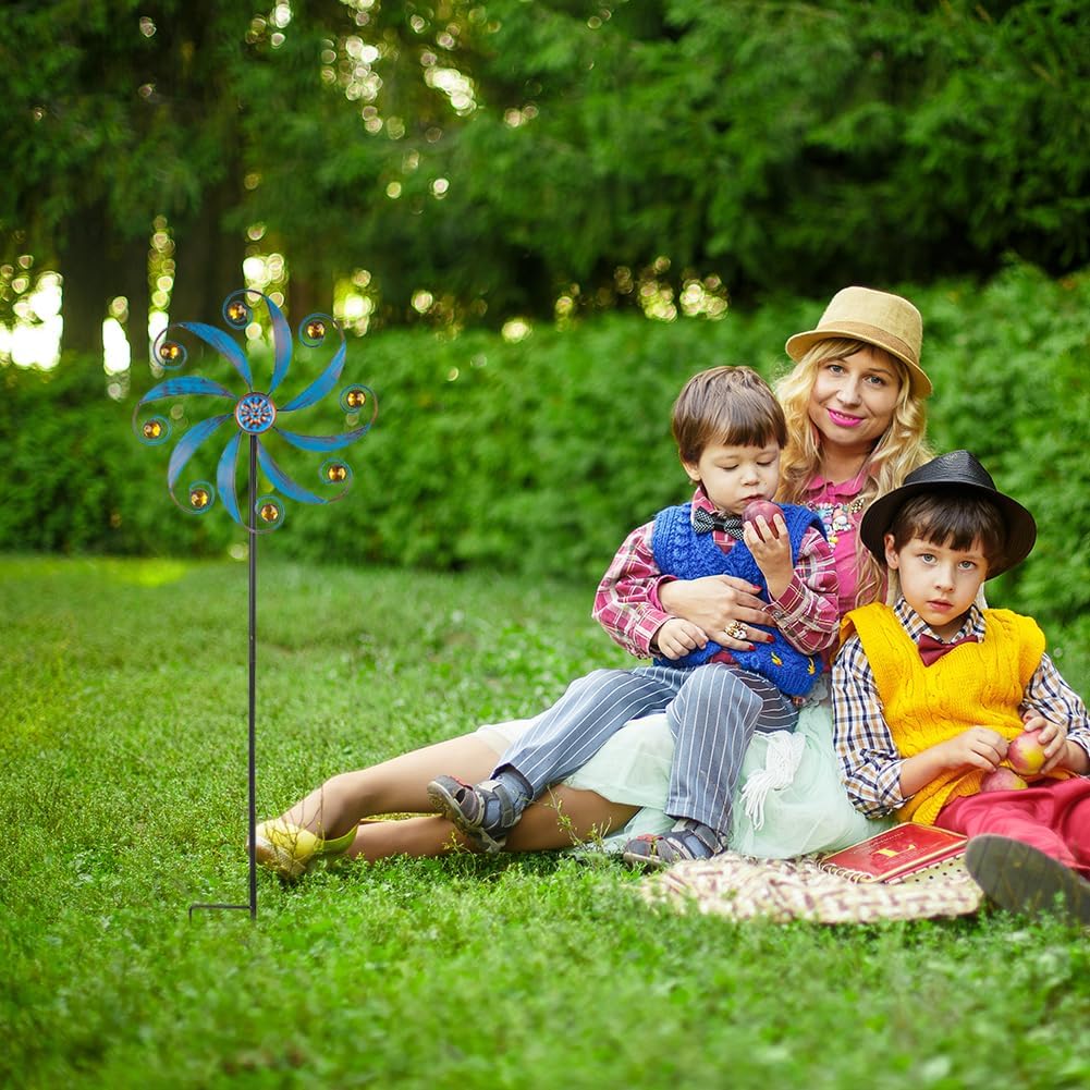 Stargarden Wind Spinner, Metal Outdoor Wind Sculptures & Spinners, Small Garden Pinwheels for Yard and Garden Decor Blue