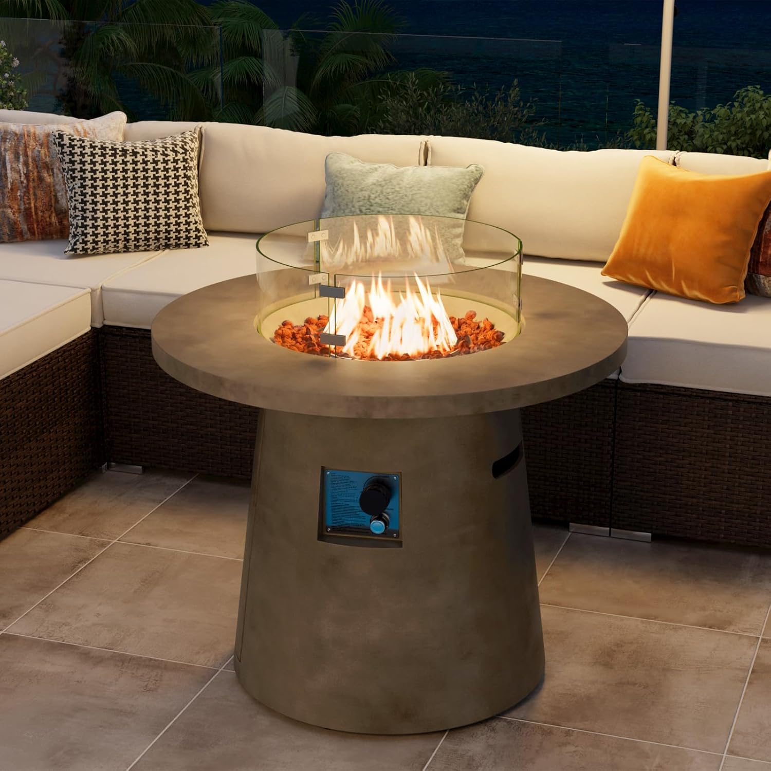 COSIEST 31.5-inch Round Fire Pit, Magnesium Oxide Outdoor Propane Fire Table, CSA Certified, 40,000 BTU Stainless Steel Burner, Free Lava Rocks, Fits 20lb Tank Inside