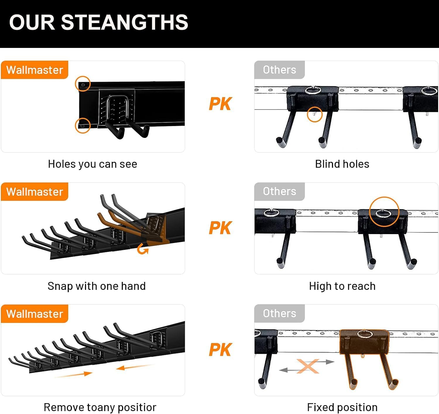 - EASILY RELOCATE→ Garage hooks can be easily repositioned anywhere on tracks of the panel when storage needs change. And fast wall-mount hooks can install in a snap