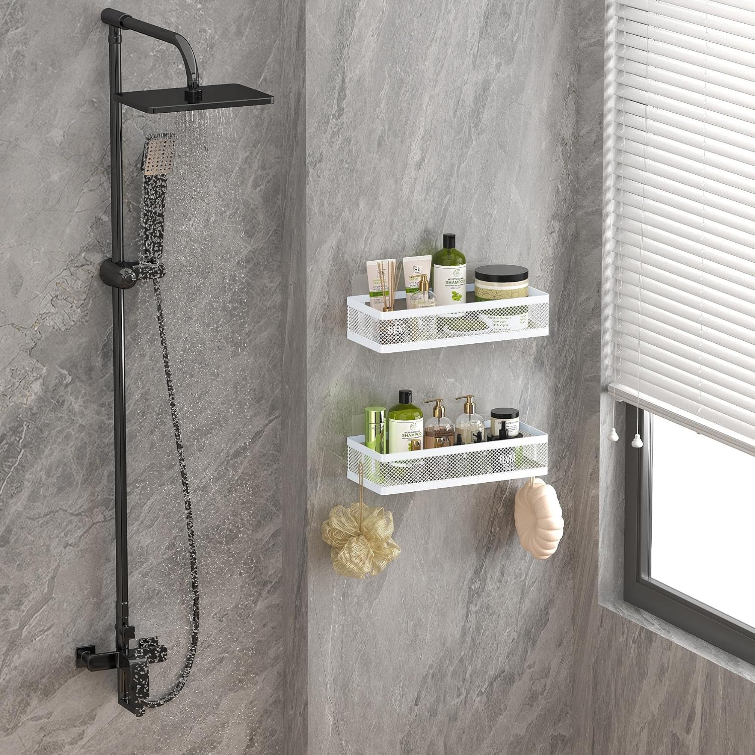 PUSDON Hanging Storage Baskets Organizer Wall Mount, Metal Wire Storage Bin Rack for Kitchen Bathroom Shower Spice Shelf Home Decor Essentials White-2 Packs (Netting)