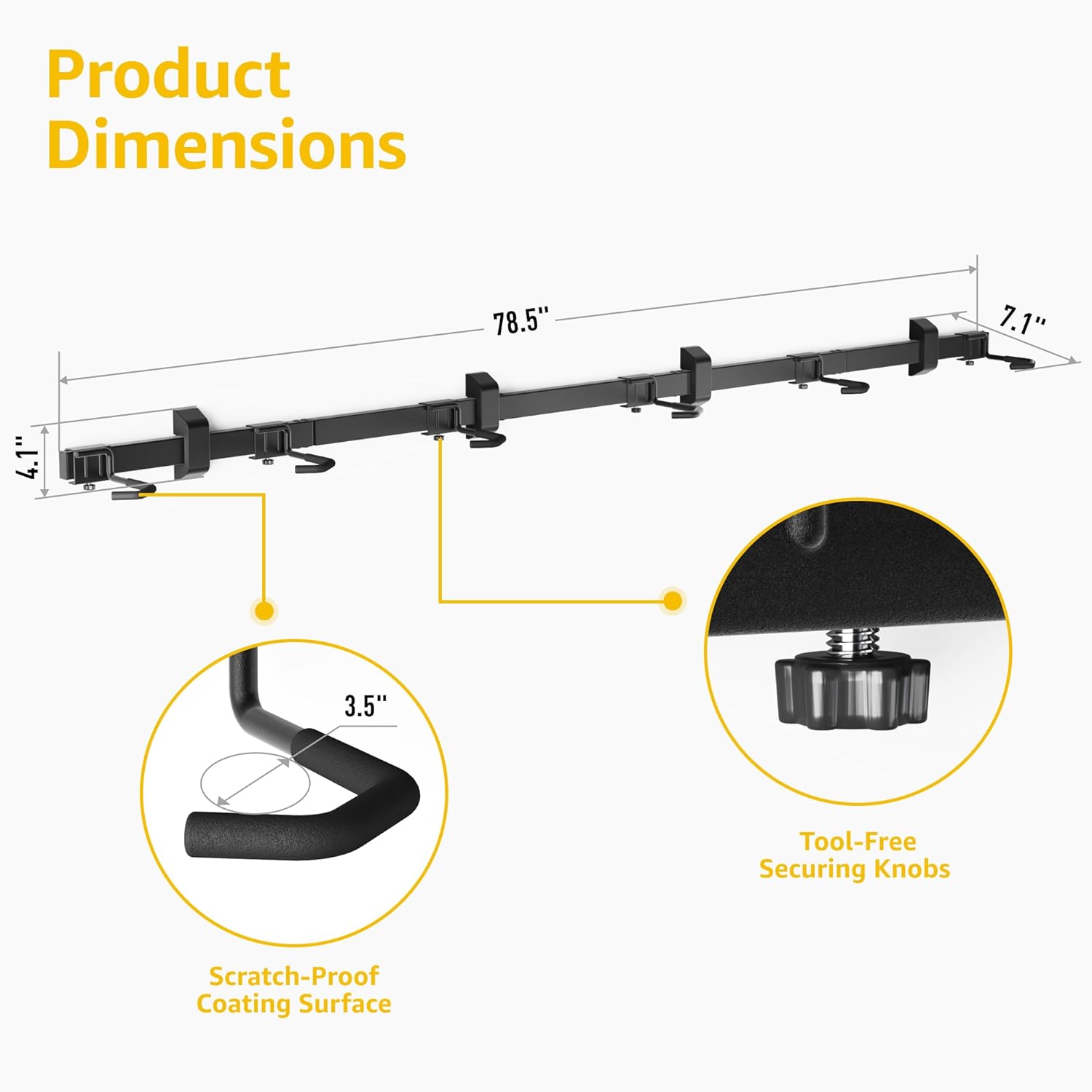 monTEK Enhanced Garage Bike Rack, Adjustable 6 Bike Hangers for Garage, Equipped with 78.5in Extended Rail to Accommodate Various Bicycle Sizes, Heavy-Duty Steel Bike Wall Mount, Max Capacity 330 lbs