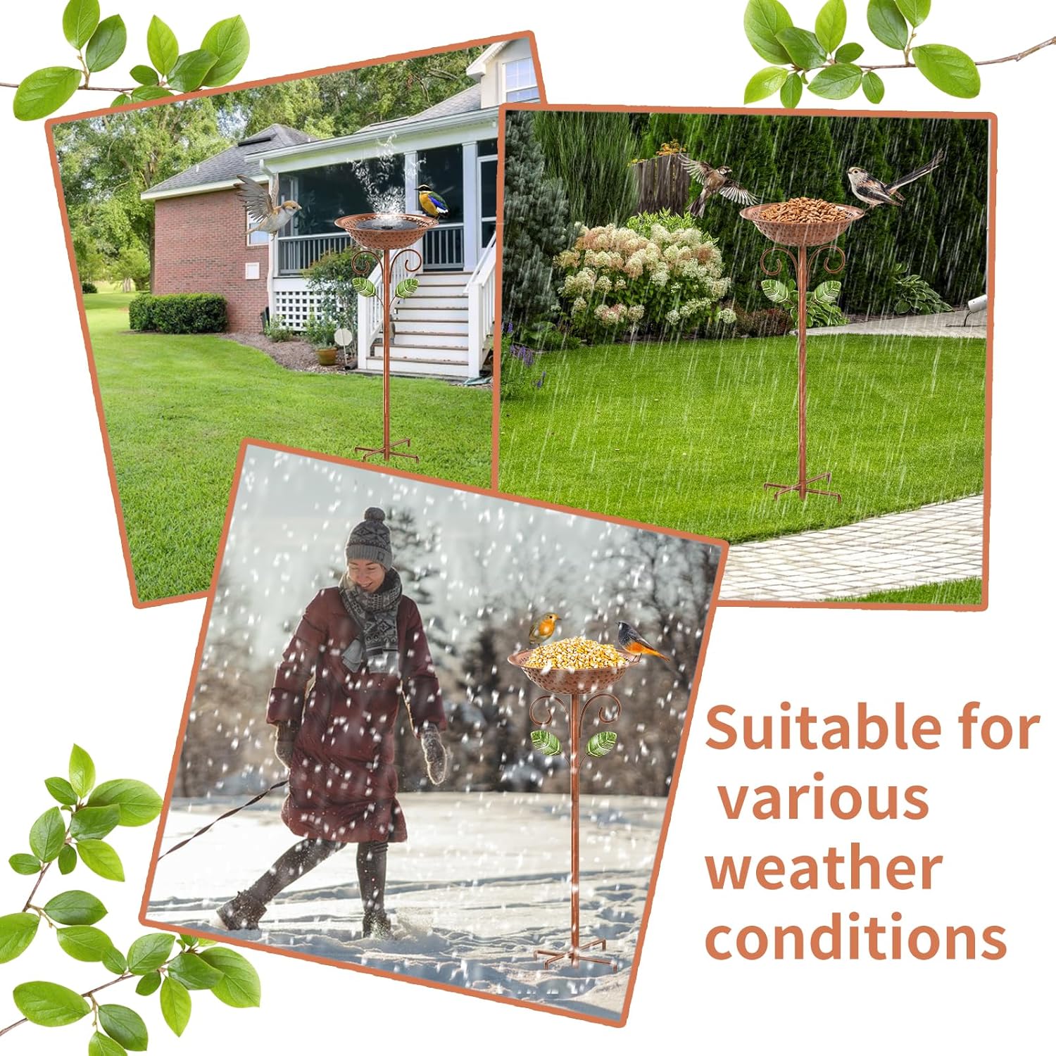 - 【Sturdy & Stable Birdbath】The bird bath is made of high-quality metal materials and coated with a safety protection layer, which is sturdy and durability to avoid rusting.