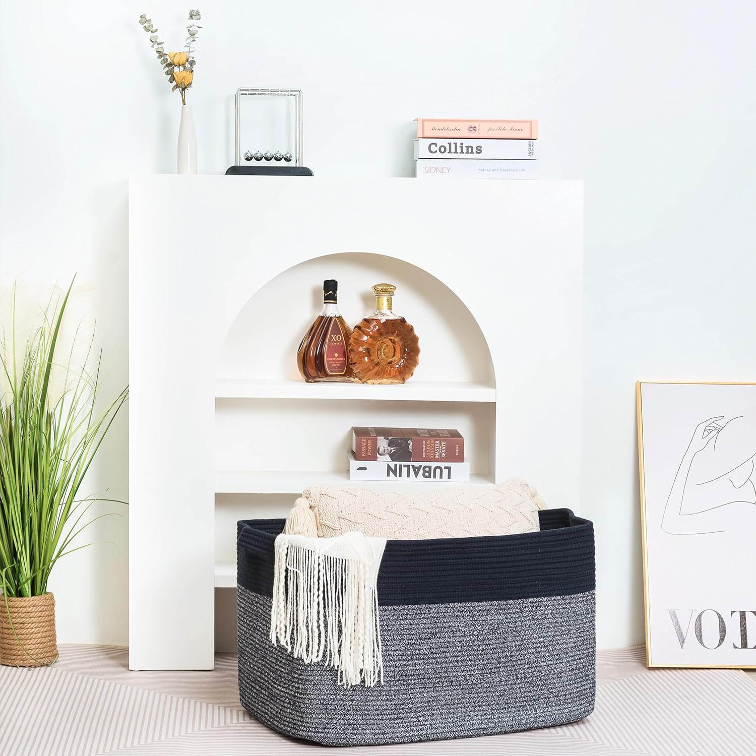 - Decorative Storage Baskets for Home Decor - A stylish, practical alternative to other boring storage solutions. Not only will our large storage baskets help you get organized, their sleek, sophisticated shape and neutral colors will complement any decor and any room: the bathroom, playroom, bedroom, living room, laundry room, mudroom, home office, entryway & more.
