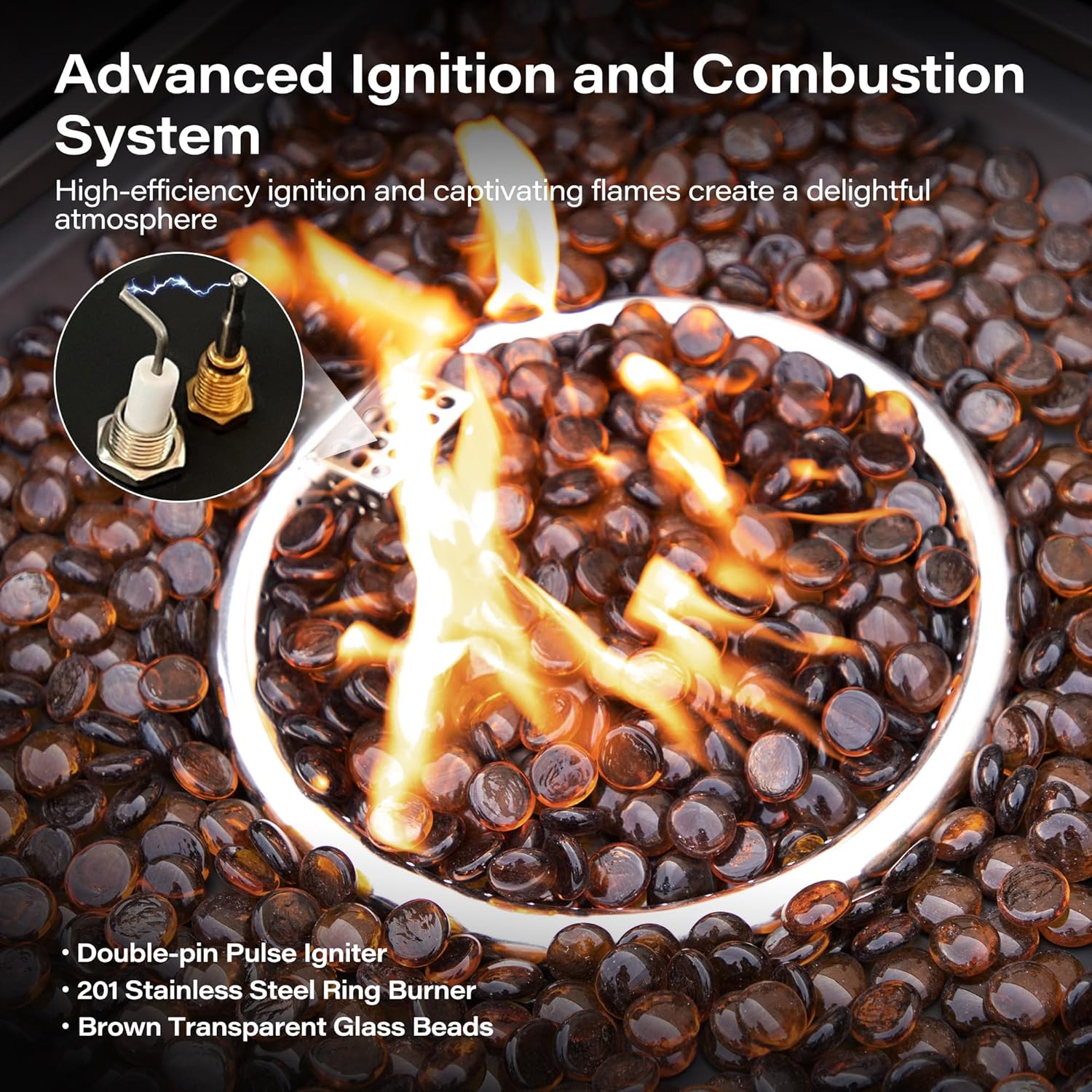 - Optimal Performance - Elevate your outdoor living with this 64-inch gas fire pit table certified by CSA. It boasts a powerful heat output of 55,000 BTU, surpassing market standards. Its transparent amber glass beads create amazing flames and an inviting atmosphere for your party.