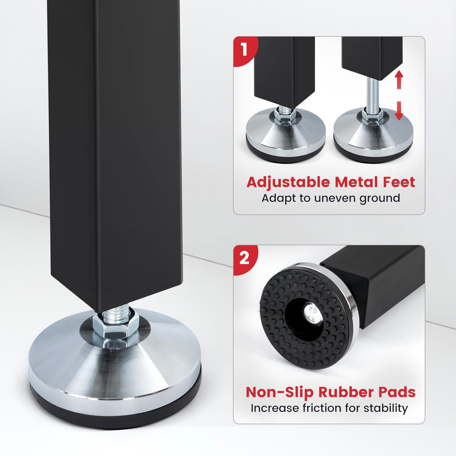 - ๐๐๐ฃ๐ฎ๐ฌ๐ญ๐๐๐ฅ๐ ๐ฆ๐๐ญ๐๐ฅ ๐๐๐๐ญ, adapt to uneven ground to maintain stability. ๐๐ง๐ญ๐ข-๐ฌ๐ฅ๐ข๐ฉ ๐ฌ๐ข๐ฅ๐๐ง๐ญ ๐ซ๐ฎ๐๐๐๐ซ ๐ฉ๐๐๐ฌ increase friction for stable and safe.