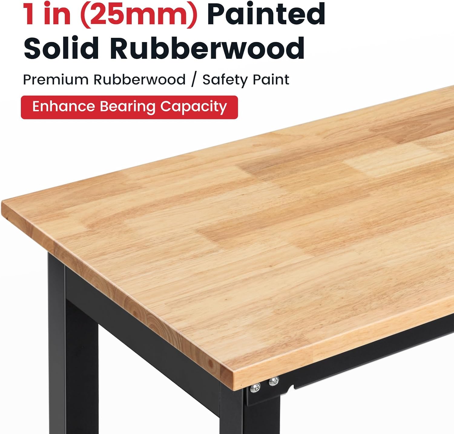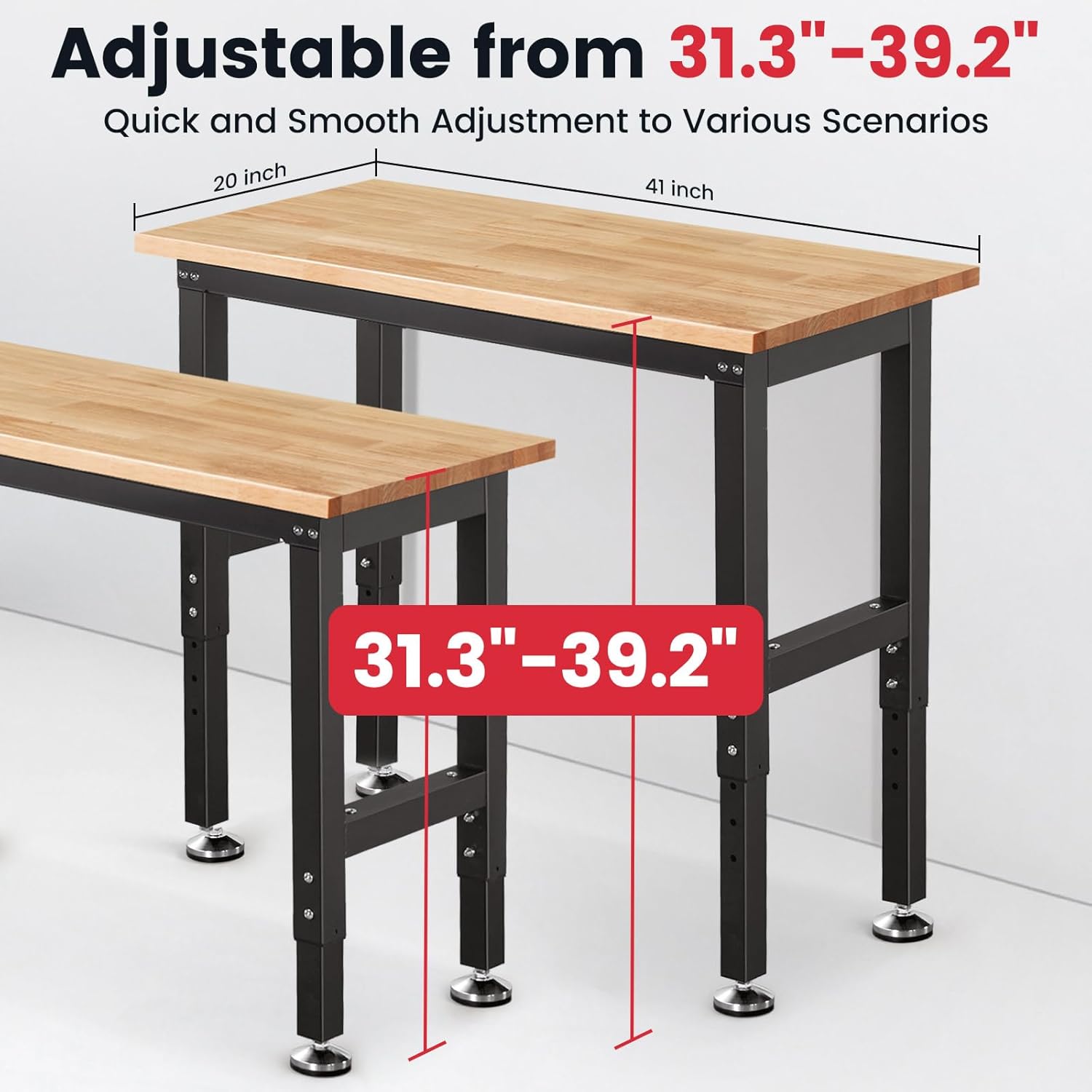 Work Bench 41 Inch Workbench for Garage Adjustable Height Heavy Duty Work Table Rubberwood Tabletop for Cutting Wood Shop Home Office Electronic Woodworking
