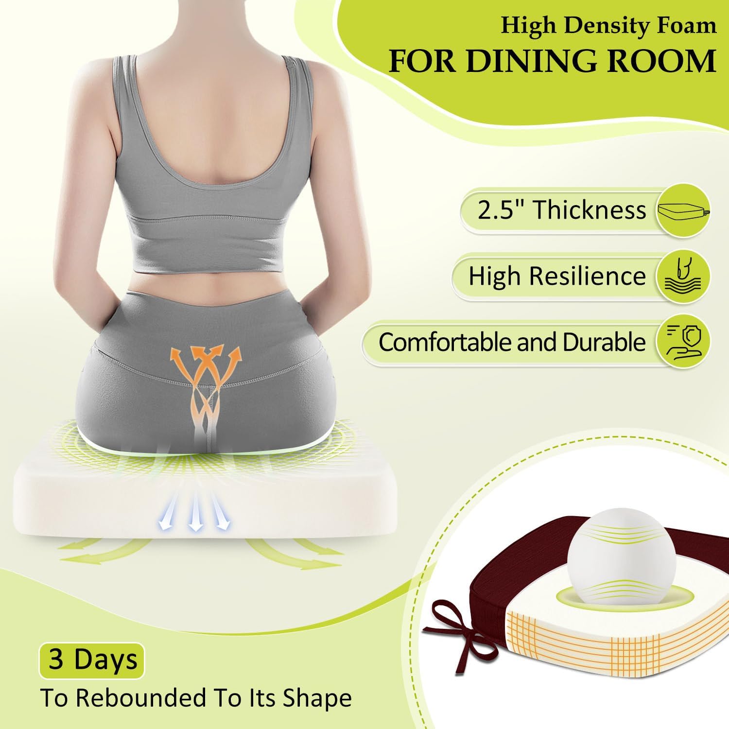 - Size Guide: These dining chair cushions measure 17" (L) x 16" (W) x 2.5" (H), designed to fit most standard dining chairs. They offer a practical solution to refresh your dining decor. Note: We recommend measuring the width and depth of your chair seat before purchasing to ensure a proper fit