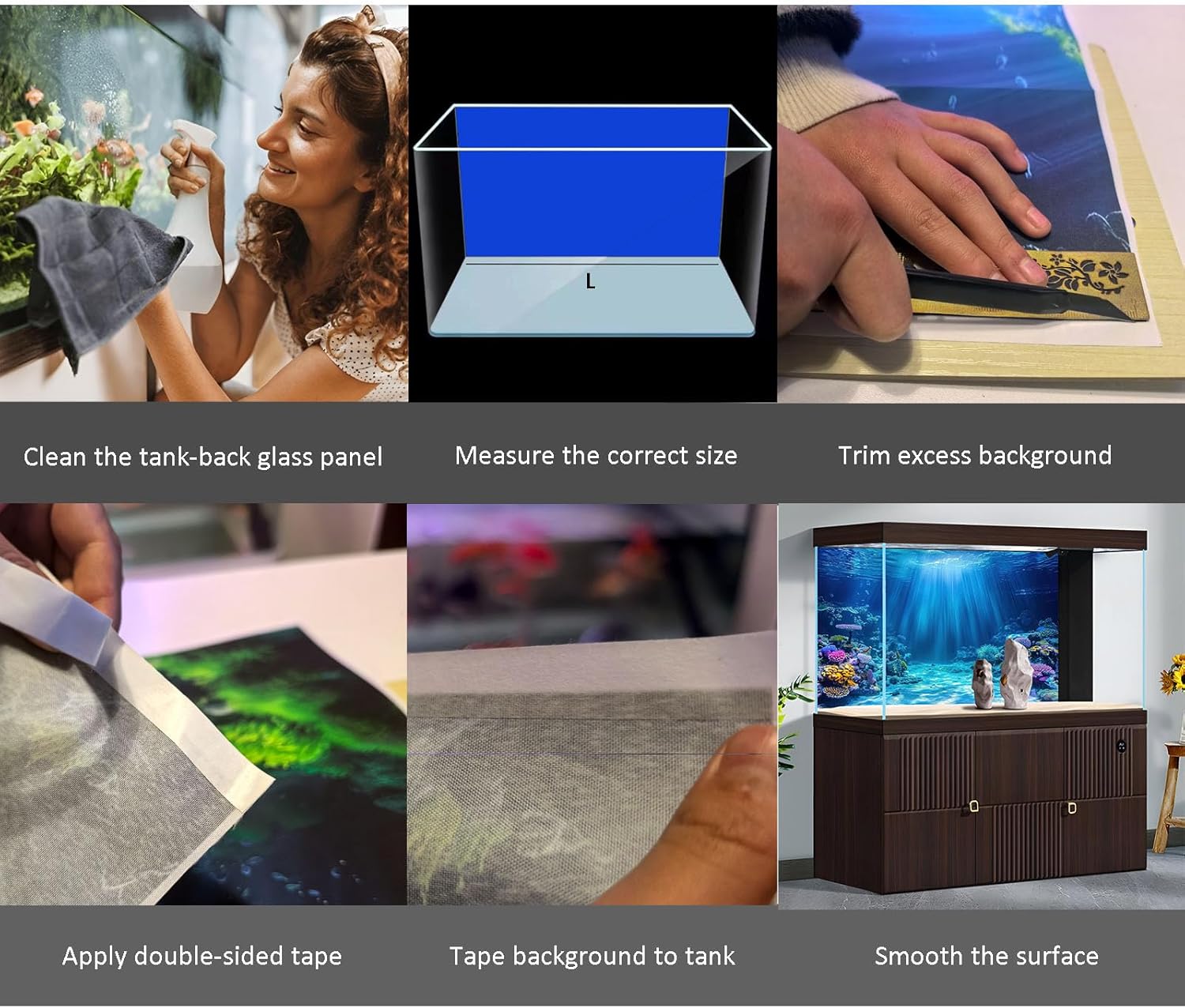 - Aquarium Backdrop Usage: This backdrop is suitable for most aquariums and terrariums. It comes in various sizes of background posters, making it an excellent decoration for fish tanks and reptiles environments.