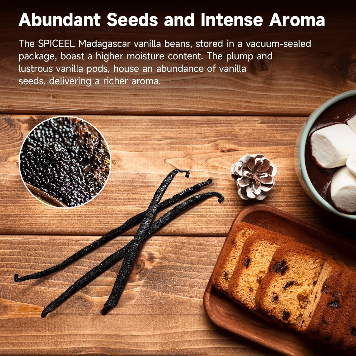 SPICEEL Madagascar Vanilla Beans Grade A Vanilla Pods for Making Vanilla Extract, Whole 5" - 7" Vanilla Beans for Baking, 10 Counts
