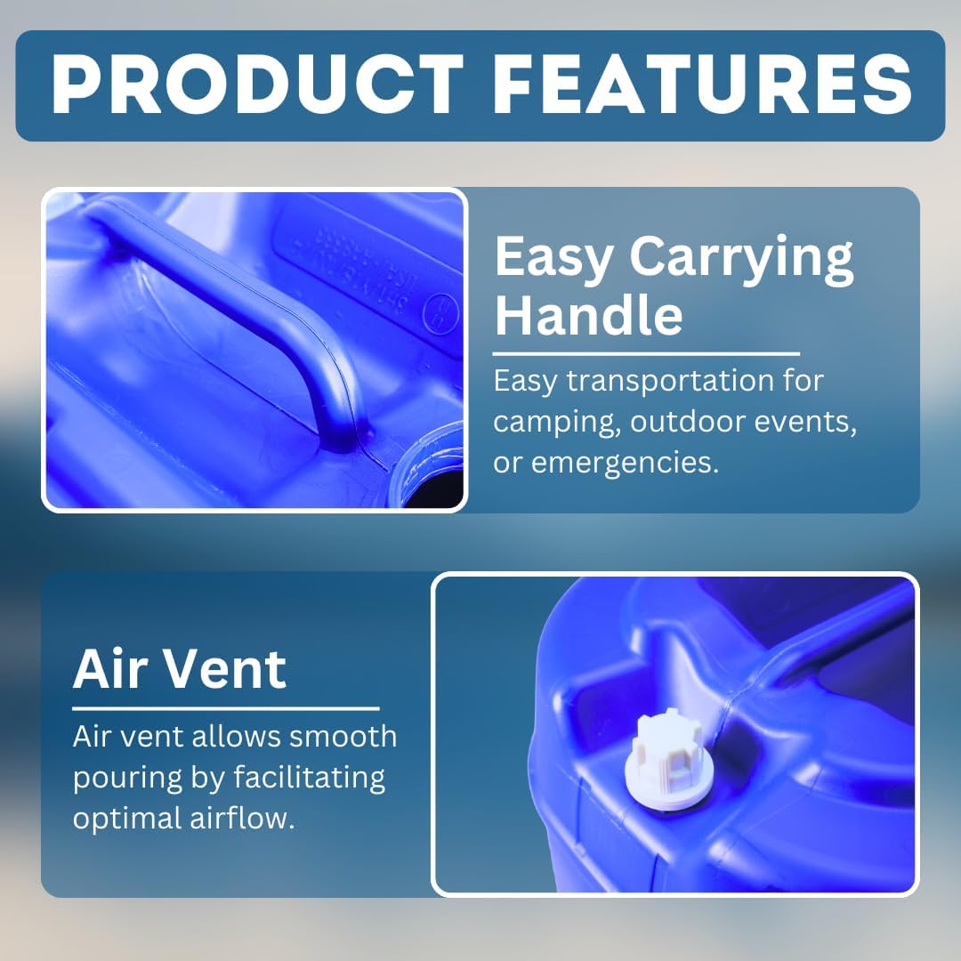 - Durable Storage: Made of food-grade plastic, this water storage container is built to last with a sturdy design able to hold up to 5 gallons of water.